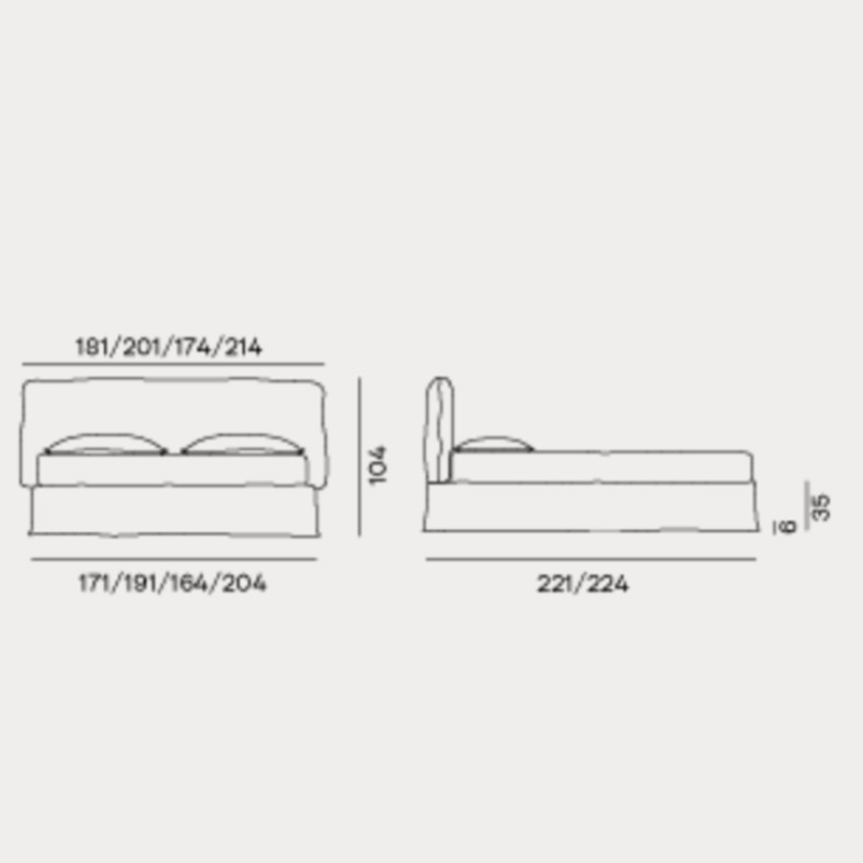 Linee morbide e accoglienti e un profilo taglia e cuci definiscono il letto LOLL 80. Proposto in varie misure, dalla versione matrimoniale standard, alle varianti queen o king size, Loll 80 ha un giroletto smontabile, contraddistinto dal leggero rivestimento sfoderabile che sembra sfiorare terra, che si abbina inoltre ad una confortevole testiera imbottita. Disponibile a scelta con vano contenitore.
