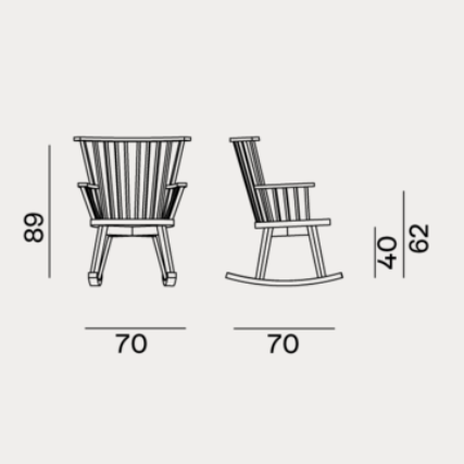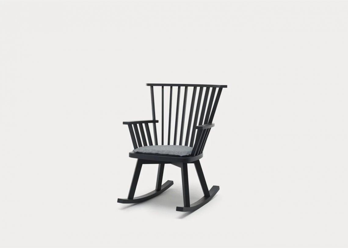 Sedia a dondolo in legno, Gray 29 si contraddistingue per linee sinuose che evocano lo stile classico nordico. è caratterizzata da uno schienale con listelli in legno che danno vita ad un gioco di pieni e di vuoti. è arricchita dal piacevole contrasto tra l’essenzialità della struttura in noce o rovere, e la morbidezza dei cuscini volanti per un comfort accentuato.