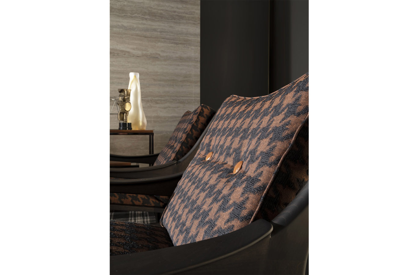 Seat and backrest with padding in expansive polyurethane foam. Cover in 20.03 cat. A Houndstooth