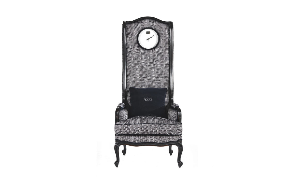 Structure in beech wood and foam. Upholstery in fabric cat. B | L.14.27. Frame in black lacquered finishing. Clock on the back.