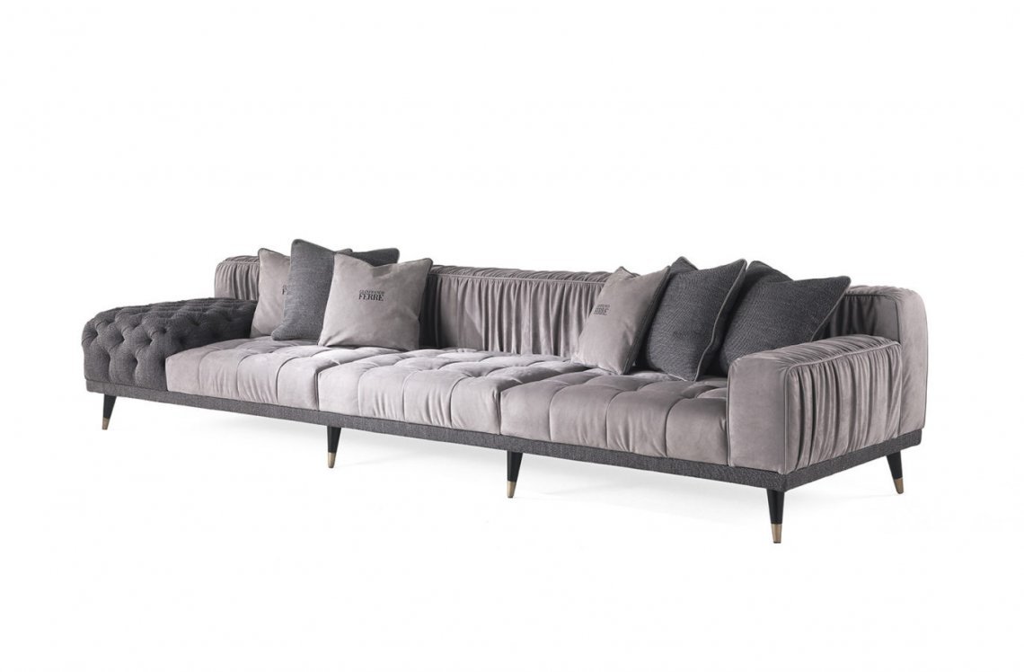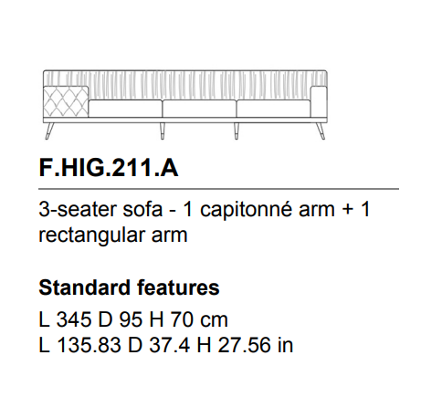 A sofa with a bold personality that combines essential design, contemporary lines and a high level of craftsmanship. The alternation between different finishings, with capitonné parts and pleating on the back creates a unique and refined set that expresses the sartorial skills of the brand.