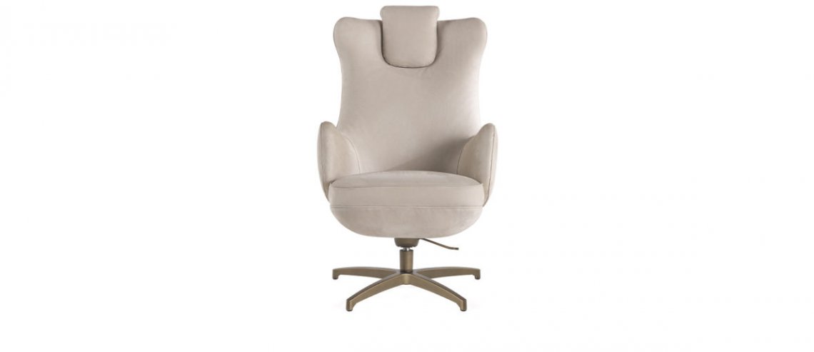 Original reinterpretation of the classic ergonomic office chair, Kurgan swivel chair brings together comfort and quality of materials and workmanship. In the new version characterized by leather upholstery and swivel base with bronzed finish it adds an urban note to a studio or an office area.
