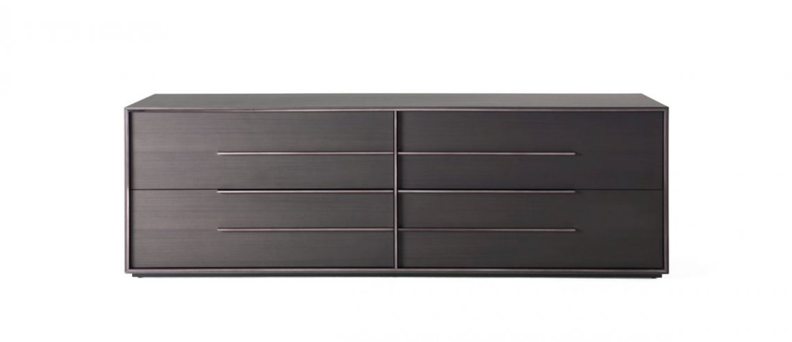 A functional element with a high aesthetic and semantic value, in line with the eclectic spirit that permeates Gianfranco Ferré Home collection, the New Orleans sideboard winks at the world of music by offering its tribute to the capital of Jazz. The black chromed profiles emphasize the volume of the structure in fine Tay wood dyed Smokey Grey, creating a design that recalls the keyboard of a musical instrument.