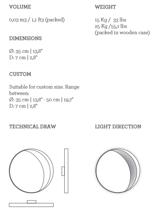 The Eclipse Wall Lamp provokes an intersection between light and shadow, stone and metal. When a third element comes into alignment, the subject, it’s demi-lunar light core and the metal rim that envelops the shape creates a stellar coronal light diffusion. The unique and sculptural hand-carved marble shade and hand-molded metal rim create a sense of invisible and harmonious movement.