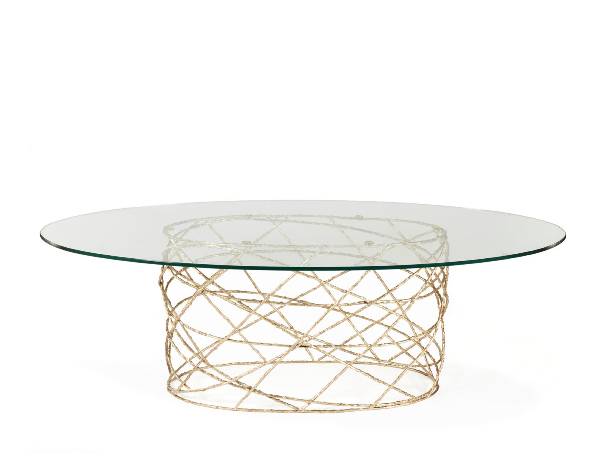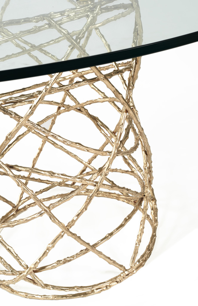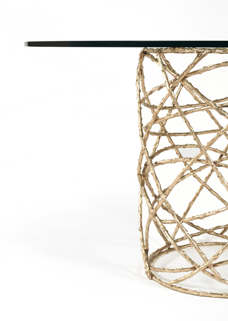 Eternalized rosebush branches, molded in brass casting, give a perennial feel to this elegant table. The bottom structure is assembled by hand by artisans, while the minimalistic top offers a soothing and quiet balance to this piece.