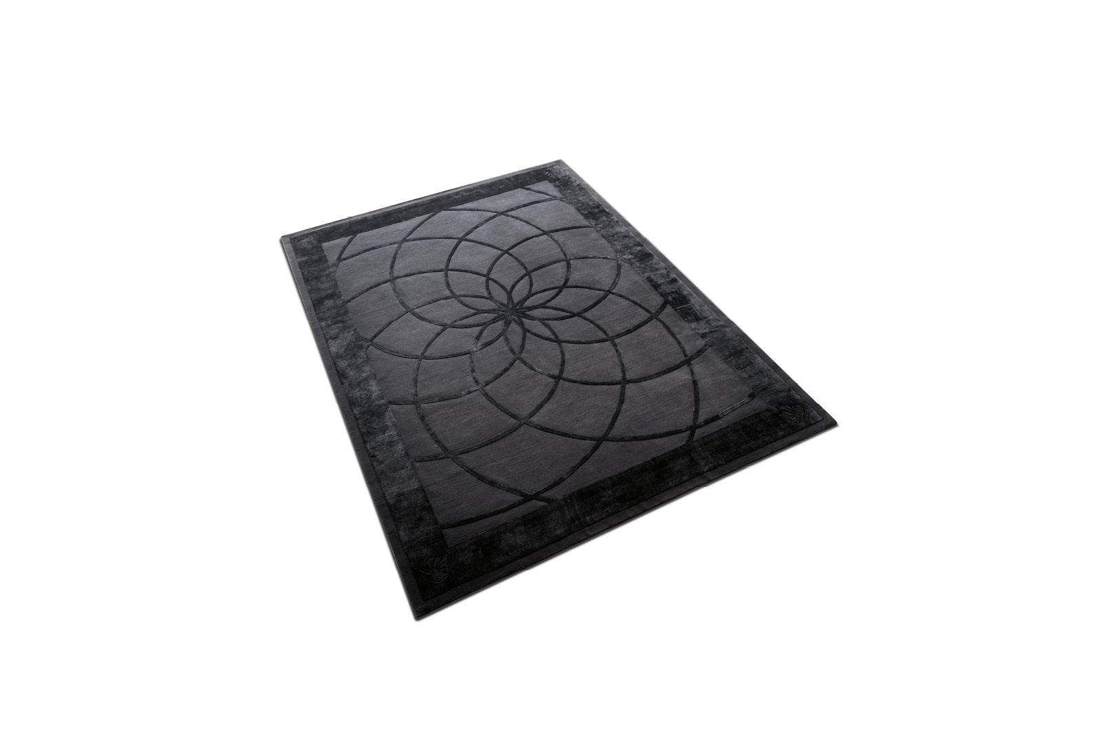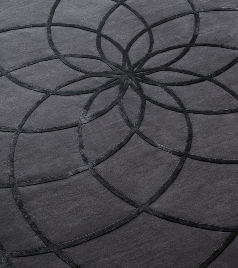 Hand knotted black carpet in combination of wool & 100% silk. Custom made.