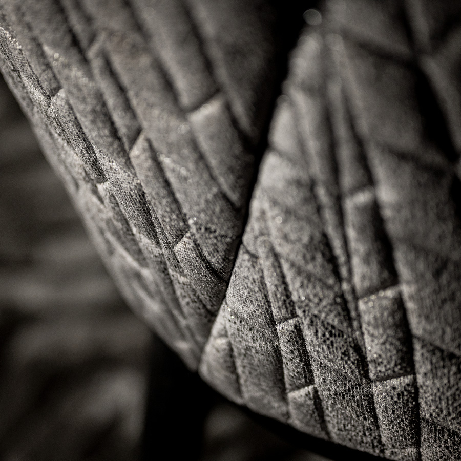 Fully upolstered side arm chair in solid beech. 4 legs with details in gold chrome stainless steel. Wooden base with Giorgio Collection metal logo.