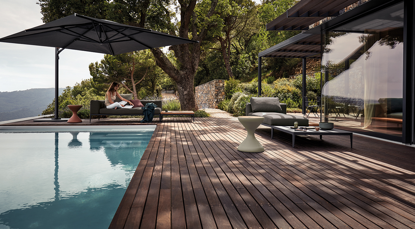 Although we all crave the sunlight, shade also has it’s own unique appeal. The Halo collection of parasols feature sturdy, aluminium frames and heavy-duty Sunbrella fabric canopies. Available as both standard push-up and practical cantilever versions, with Halo, somewhere to cool off and get away from the midday sun is never far away.