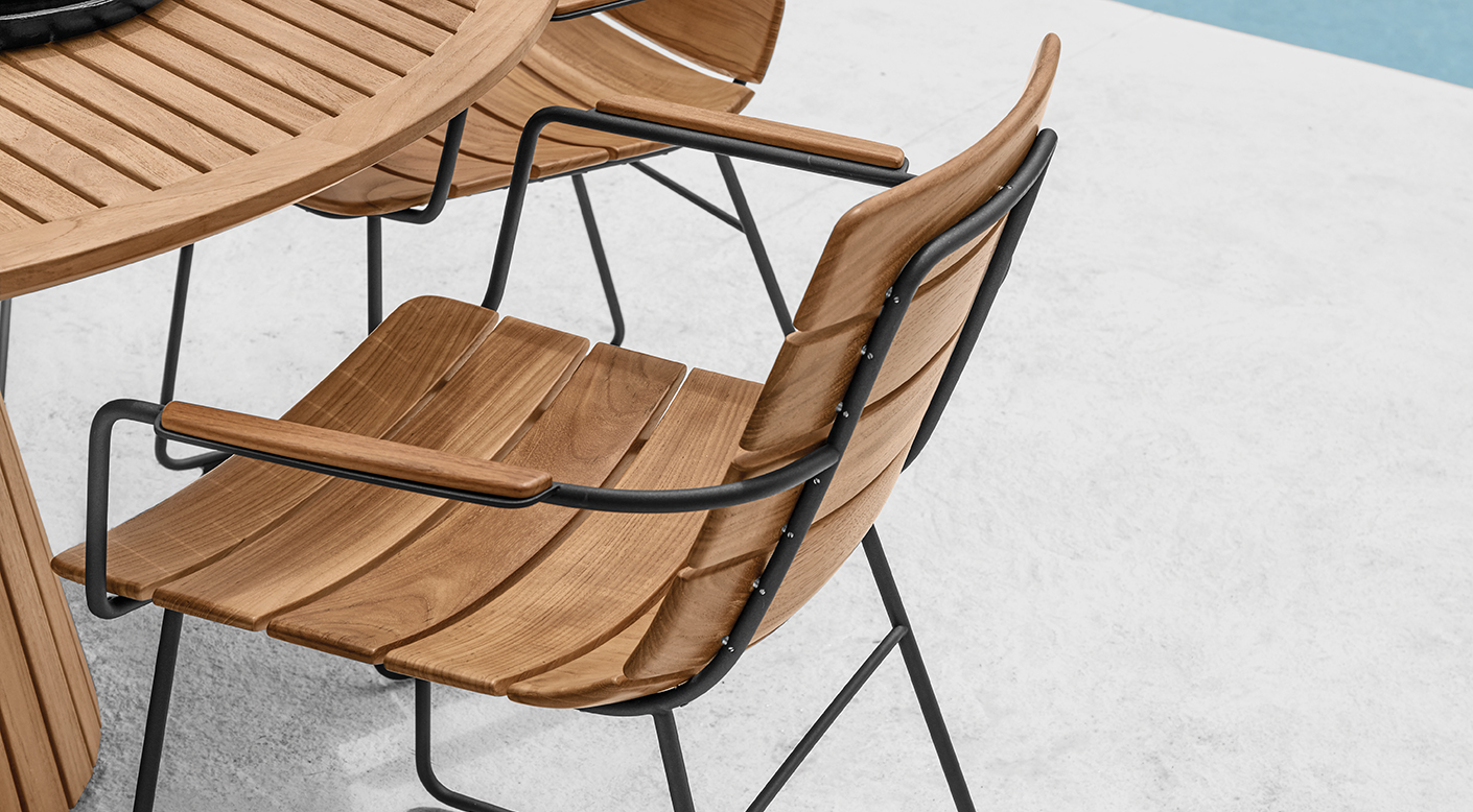 Strong but simple powder coated steel frames carry signature broad, curved plantation teak slats that define the design language of William. Matching teak armrests continue the simply stylish message, while optional seat pads in a variety of durable outdoor fabrics are available if required.