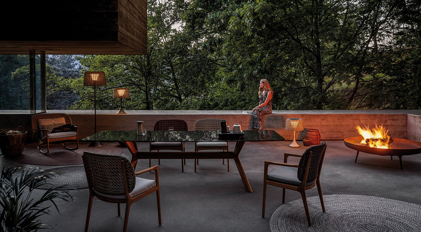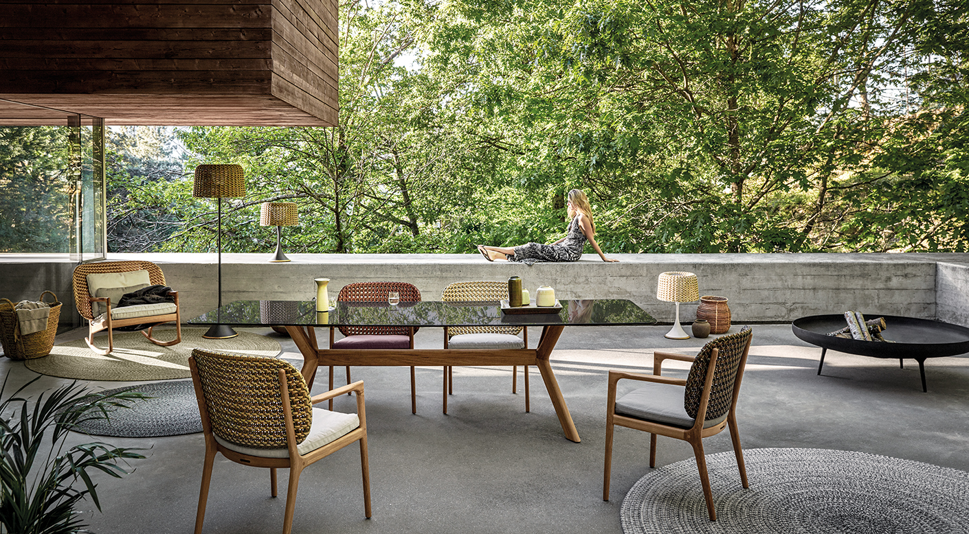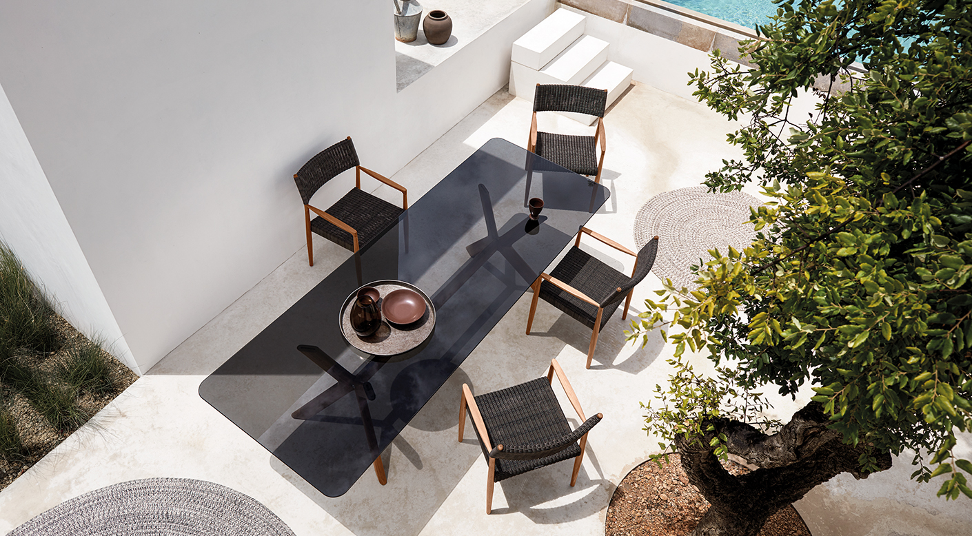 The humble table re-imagined. A place to meet, a place to eat, a place to share time, with no compromise on design. X-Frame combines a smoked, grey glass top that reveals the support below. Expertly crafted from plantation teak, this elegant yet supremely strong underframe quietly complimented by an understated top epitomises Gloster’s approach to design.