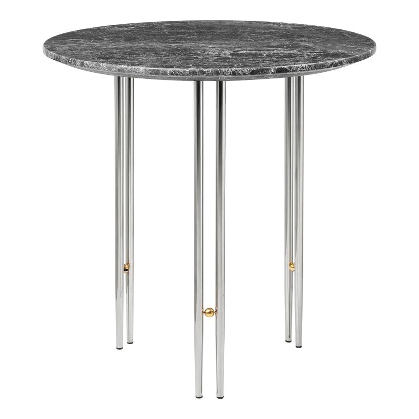The IOI Side Table by GamFratesi is a celebration of Italian materiality, featuring solid brass, steel, and now travertine. Drawing on geometric Art Deco references with a contemporary design language, the collection explores the empty space between the physical form as much as the form itself. Striking and unique, the IOI Collection takes its name from the structure of the table legs, each of which is formed from twin metal tubes linked by a sphere of brass the letters I-O-I rendered in physical form. Retaining this slender base, in black or chrome options, GUBI’s new edition introduces a new material and color to the circular tabletop travertine in Rippled Beige and refines its shape. The sides are rounded to create a U-shaped edge that arcs evenly on the top and bottom.