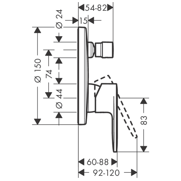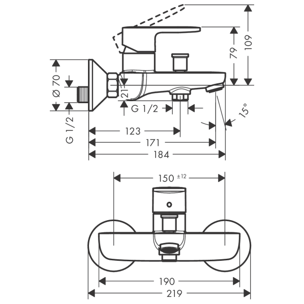 centre distance: 150 ± 12 mm