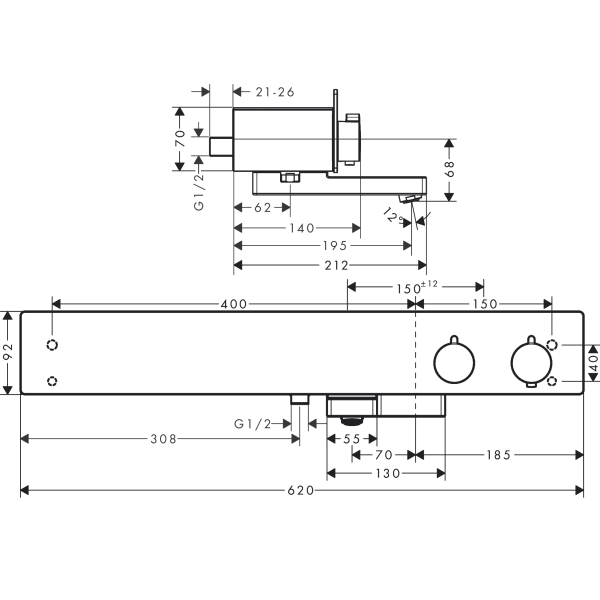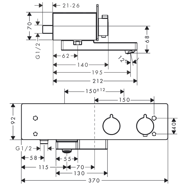 centre distance: 150 ± 12 mm