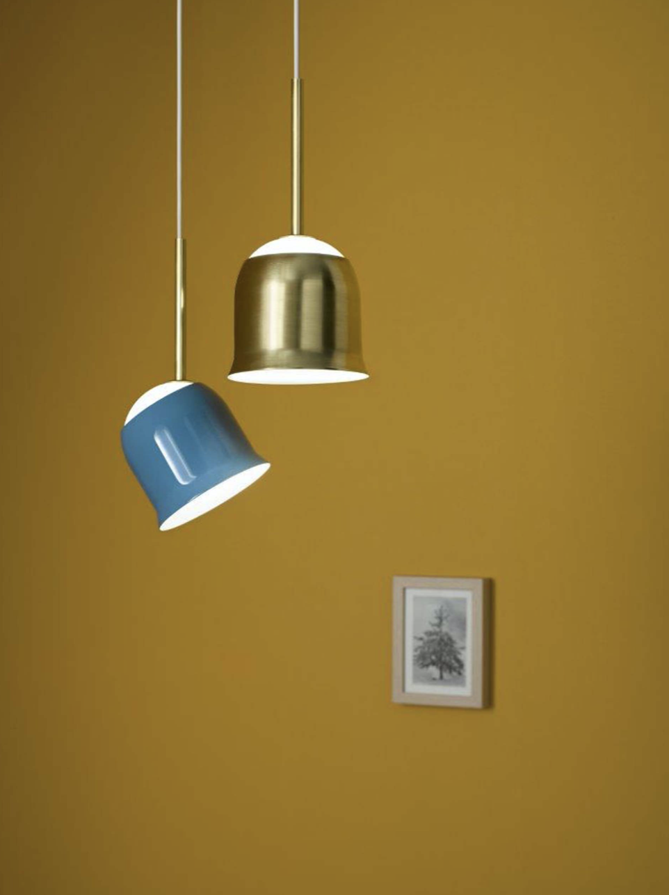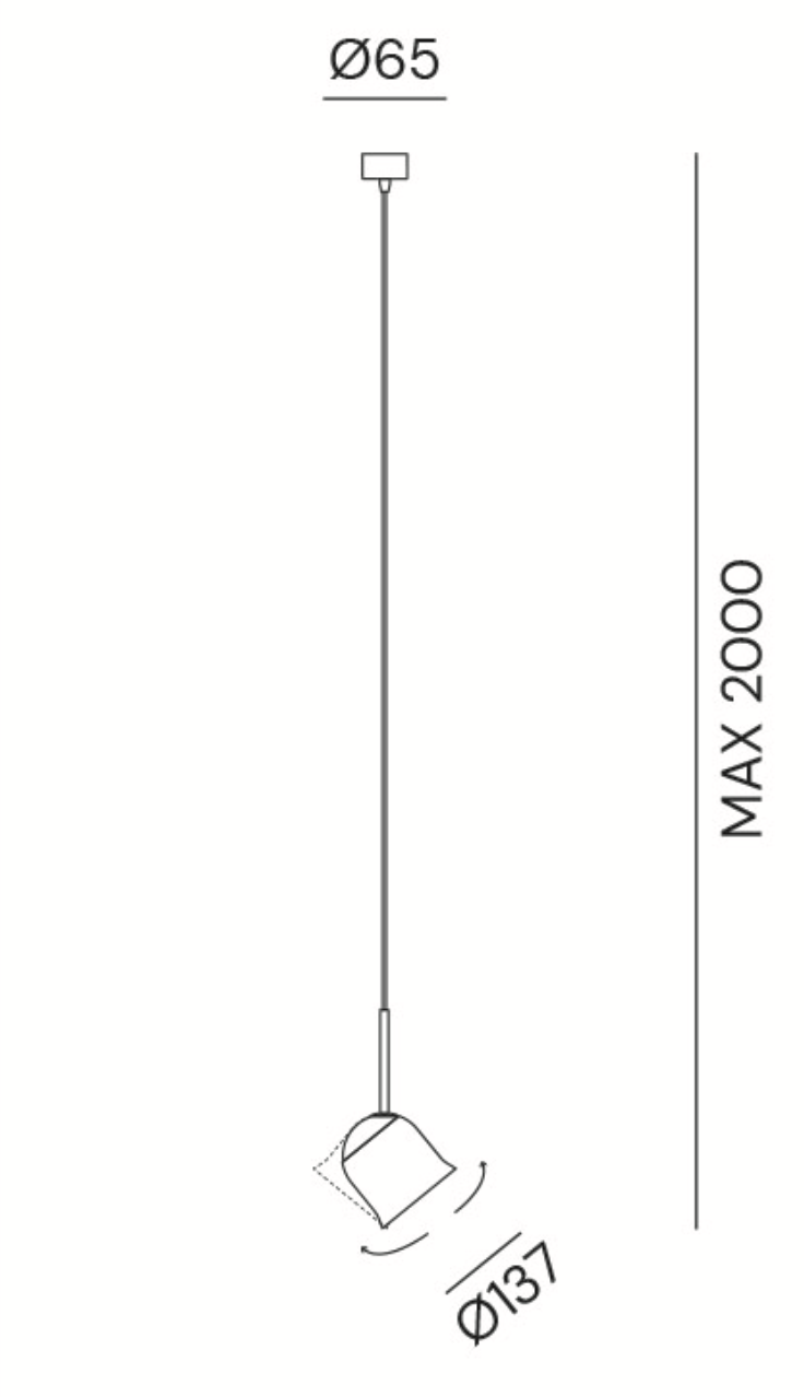 La forma della campana, depurata fino ad arrivare a volumi geometrici semplici, è utilizzata come corpo diffusore, realizzato tramite un’unica sapiente tornitura in metallo. Il volume così generato si posa su una sfera luminosa in vetro opalino, e grazie alla sua forma può essere orientato in qualsiasi direzione con un gesto semplice ed intuitivo.