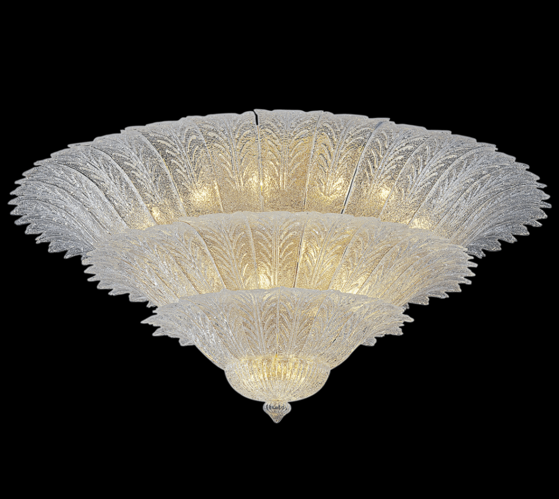 Ceiling lamp with satin glass leaves and nickel metal details. Available in different dimensions and colours. Opera Classic Collection.