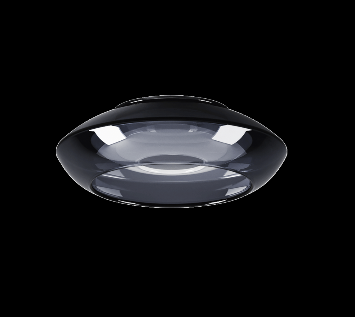 Spotlight with external transparent black blown glass and white internal diffuser.
