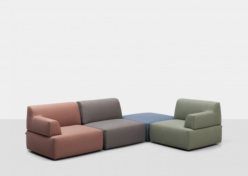 The Palchetto upholstered outdoor seating system is inspired by the architectural elements found in Italian—style theatres, the boxes or “palchetti” where spectators take their seats to watch performances. Consisting of one or more upholstered elements, which can be used alone or combined to create different configurations, Palchetto features a quick coupling and release system between the various modules, which can then be arranged as desired. The seating is soft and comfortable with a memory foam seat and backrest with elastic straps, which echoes the same shapes as Palco, an upholstered outdoor seating system where the seats rest on a platform, and with which Palchetto can be combined.