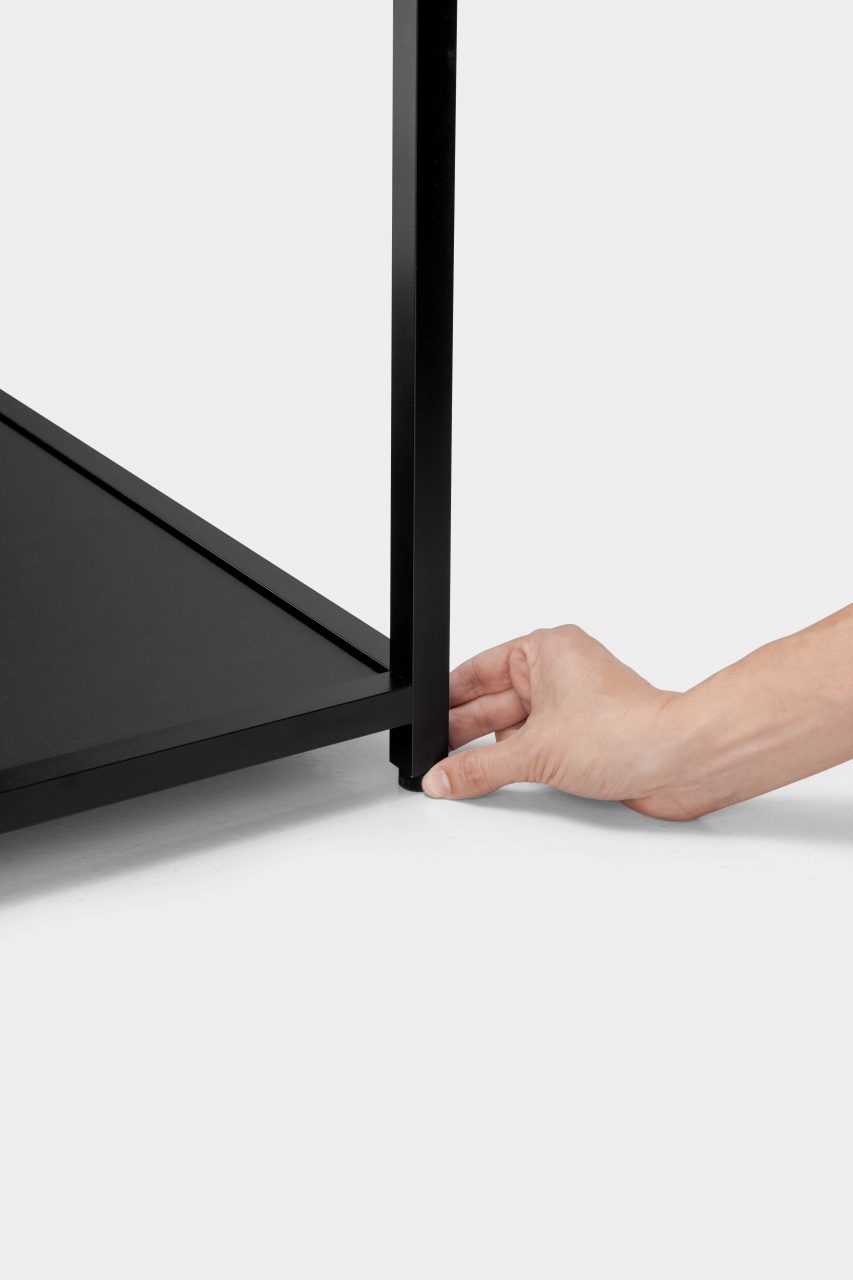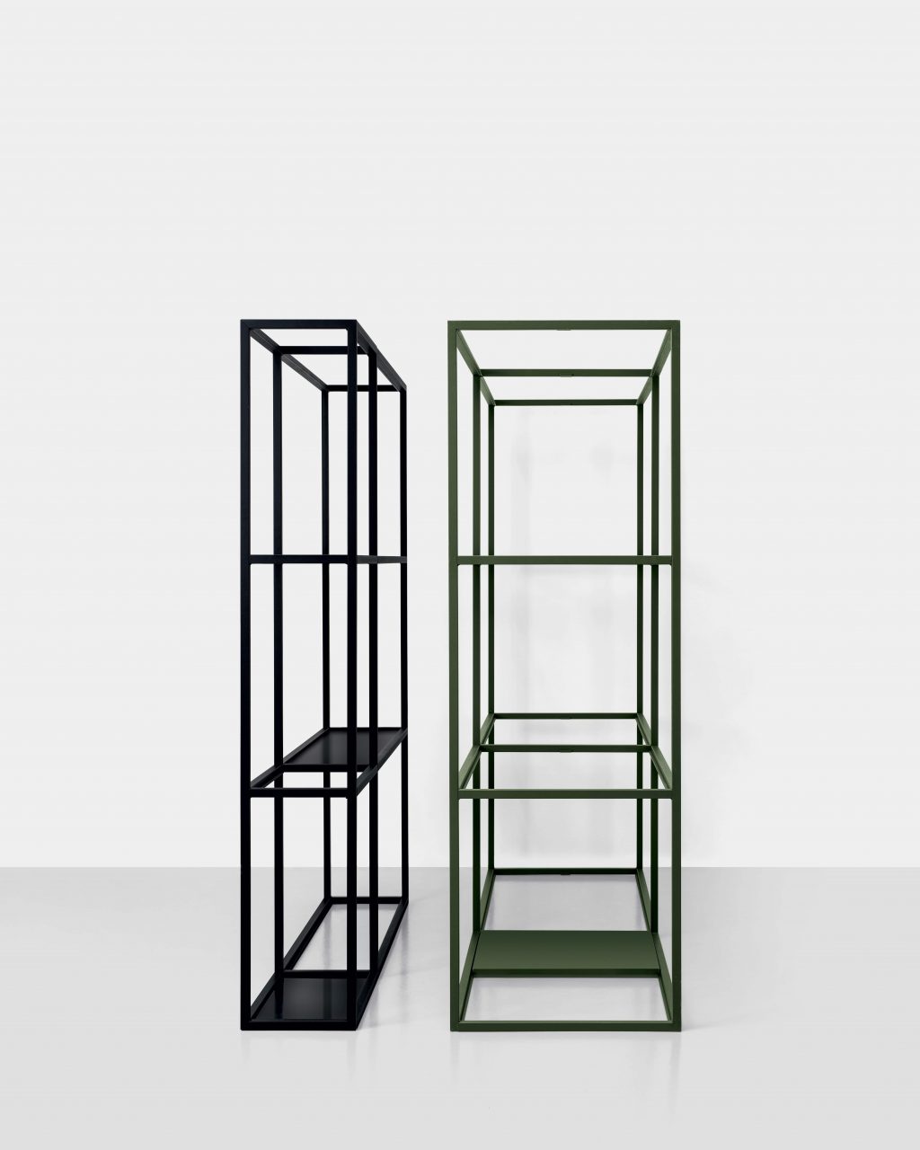 Designed for versatile outdoor use, Regoli shelves have a minimalist design that blends harmoniously into any context. Made of sturdy cataphoresis-treated metal, with a layer that protects against rust and weathering and a subsequent powder coating, it is available in white, black or olive green. Thanks to their modularity, they can be used to create a multitude of solutions, choosing from modules of different widths and depths, always 200 cm high. Even the shelves, either with a grid for the passage of water or solid ones, can be moved as you prefer to meet all needs: for furnishing a patio or terrace, organising a vertical vegetable garden or a collection of plants, storing wood or tools etc.