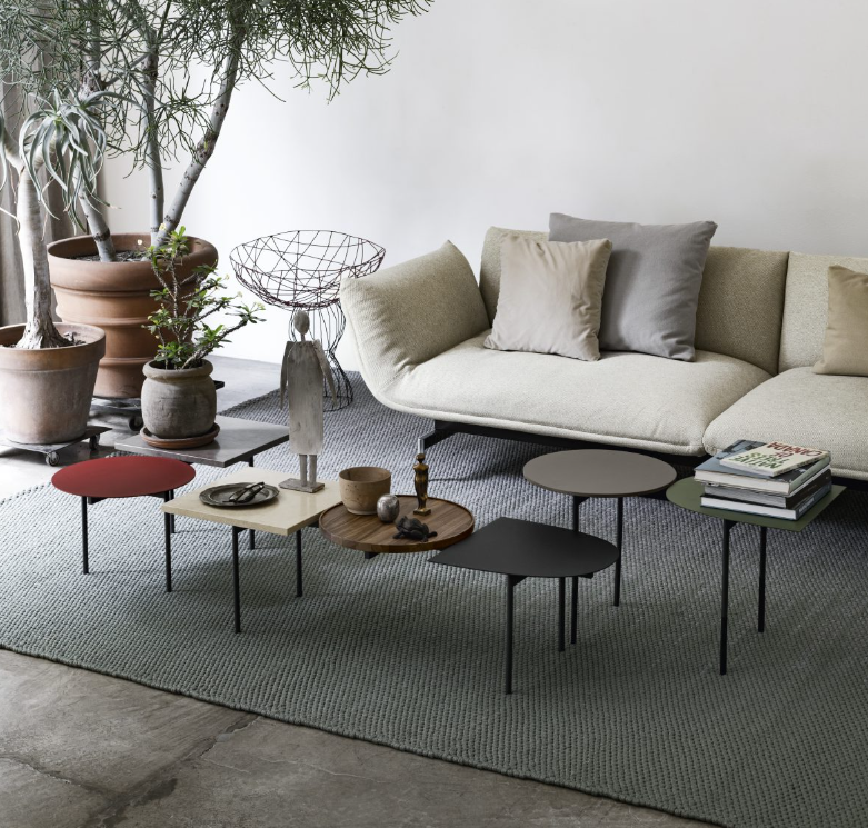 Constellations is Luca Nichetto’s tribute to the artists Joan Mirò and Alexander Calder and their meeting in Paris in 1928. The coffee table comprises a light and simple metal frame, on which a choice of squares, circles and semi-ellipses can be combined – inspired by Mirò’s conceptual shapes and Calder’s “Mobiles” – to create compositions of surfaces with different thicknesses and ?nishes. The effect is an abstraction of suspended objects: a constellation.