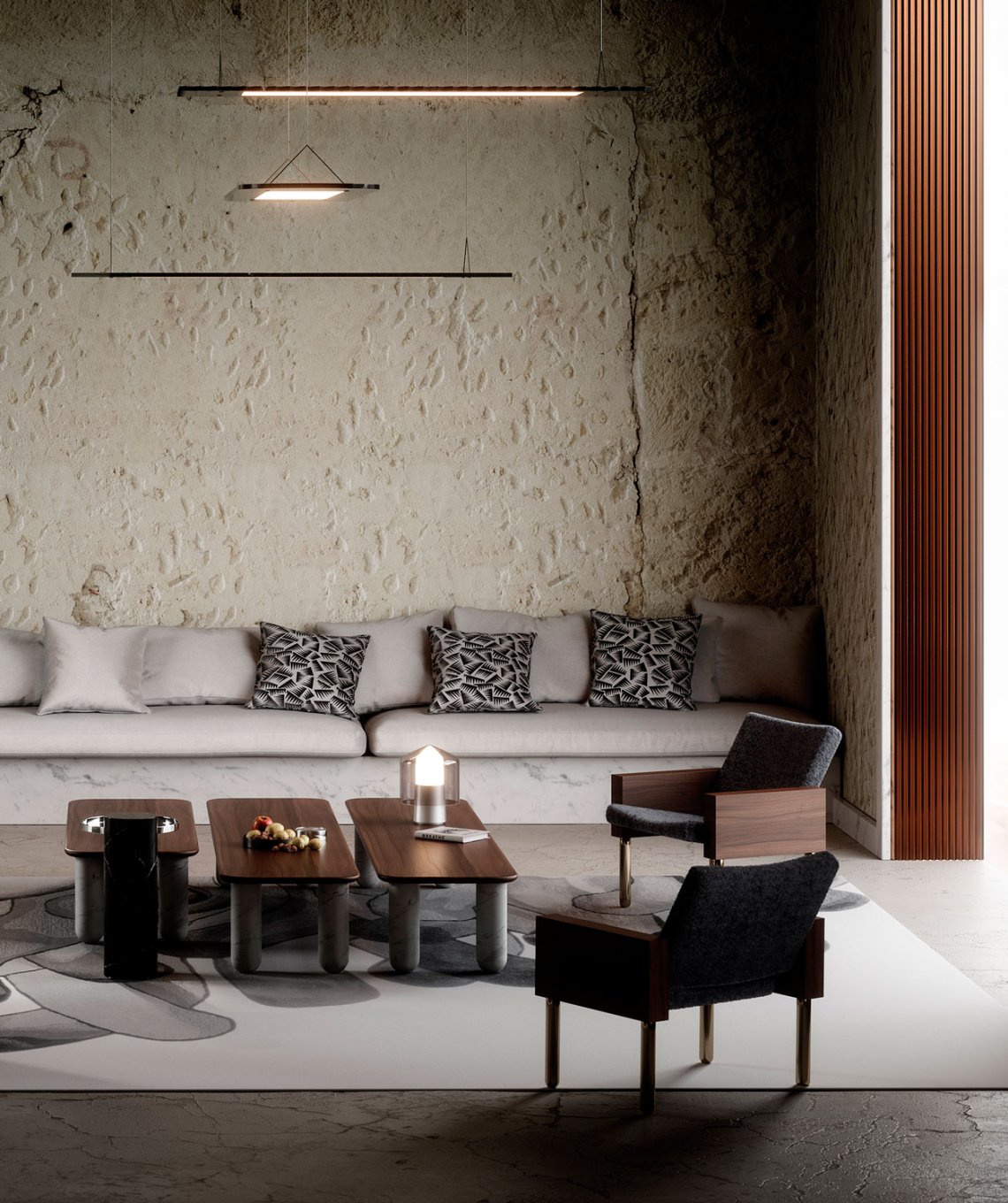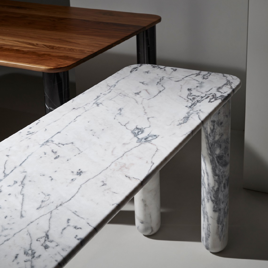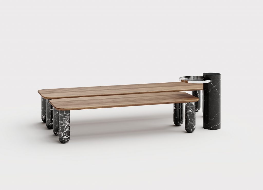 Sunday is a family of coffee tables and low consoles with a simple and clean design vocabulary. The combination of heavy marble legs with the thin solid wood or marble top creates an interesting contrast while the rounded edges and generous proportions provide a comforting feeling.