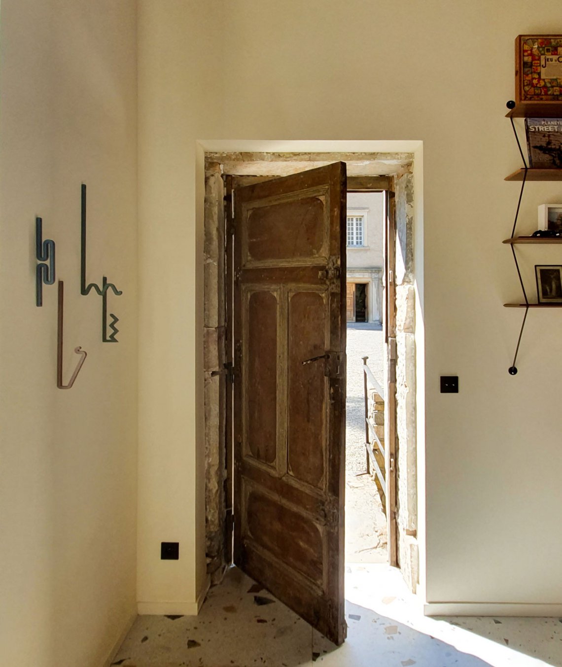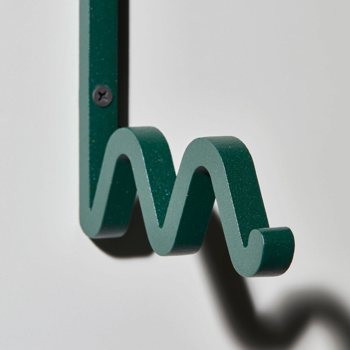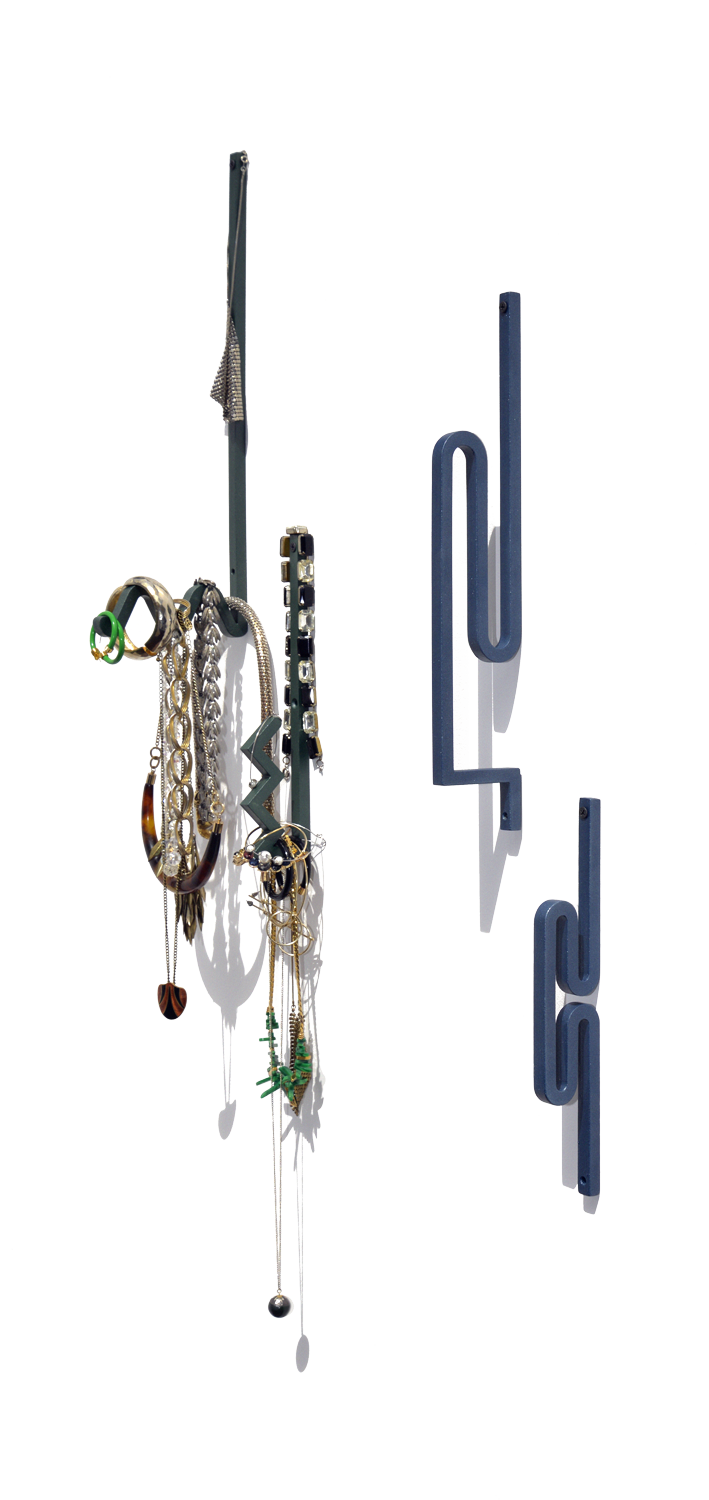 Zag is a family of coat hooks. Their varied shapes are inspired by barrettes, pins, or twisted metal rods combined to create a graphic composition. Each shape is like an imaginary letter that offers a different way to hang your clothes, your bag, or any accessory.