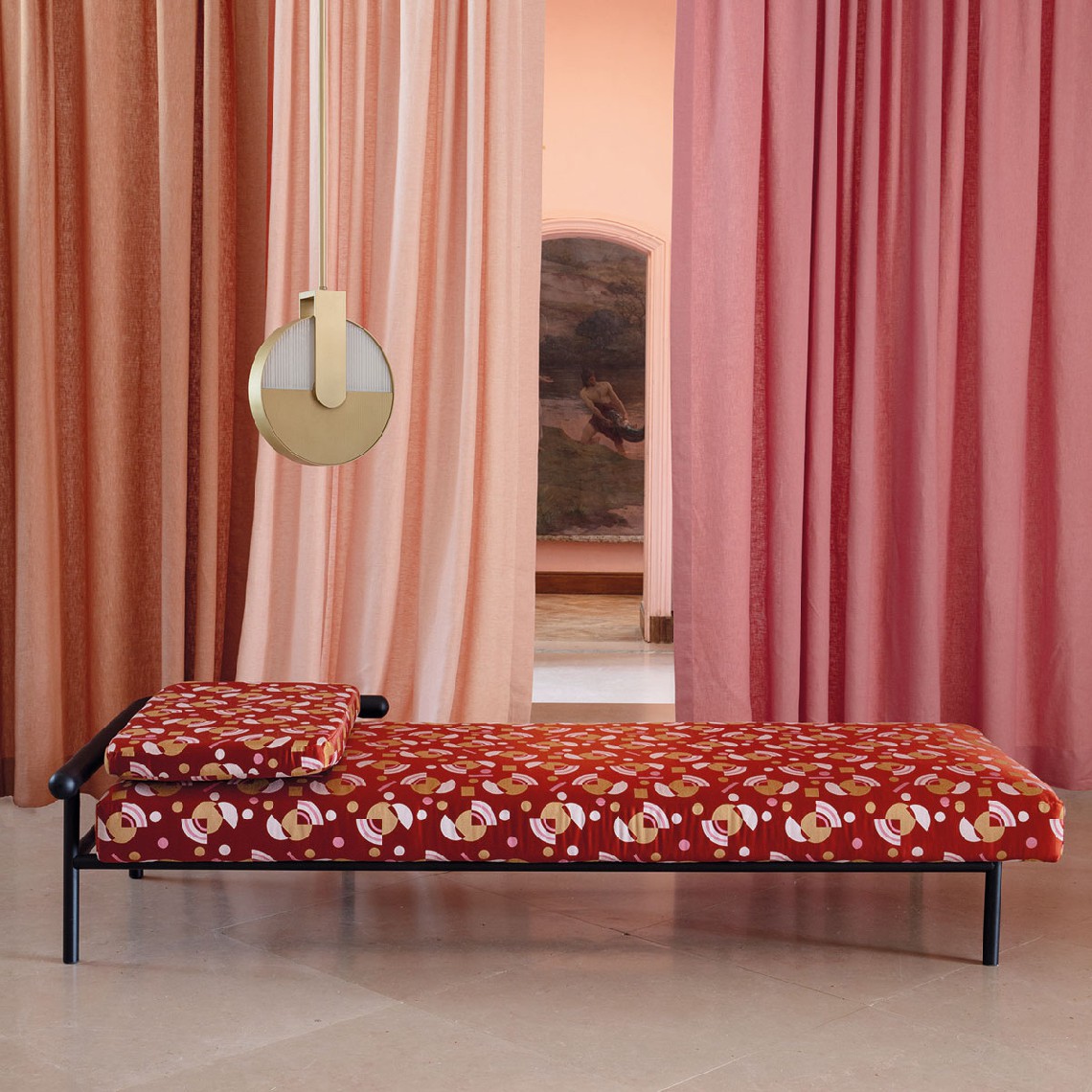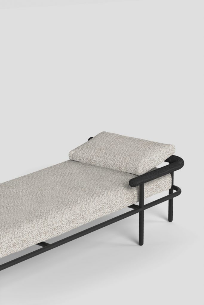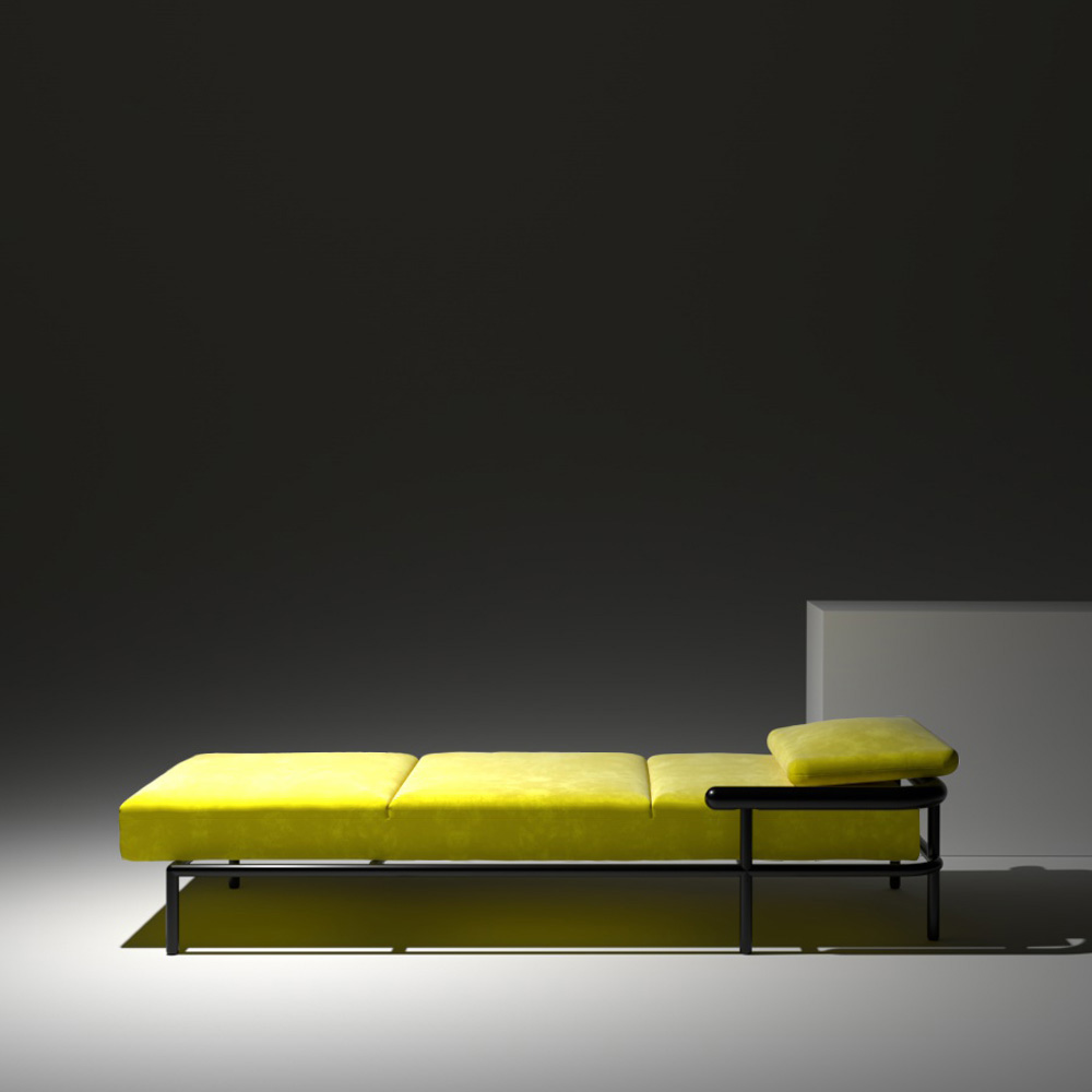 X-Ray is a daybed with a metal and wood showing structure. Instead of hiding the structures under fabric, Alain Gilles literally x-rayed the welcoming and comfortable traditional sofa construction to create a graphic and sculptural piece for the home and the office.