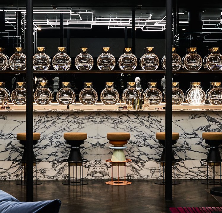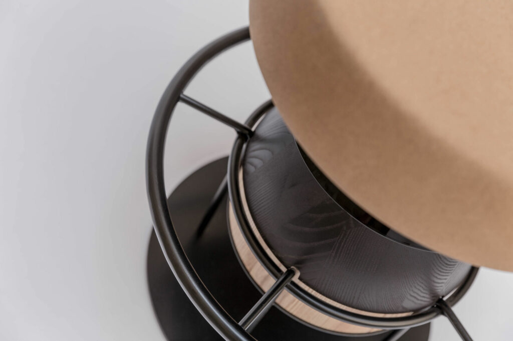 Tembo is a sculptural stool that combines a wood and metal body with a solid cork seat. The designers drew their inspiration from the African tam-tams(Tembo means elephant feet in swahili) white giving a nod to the Memphis group aesthetics.