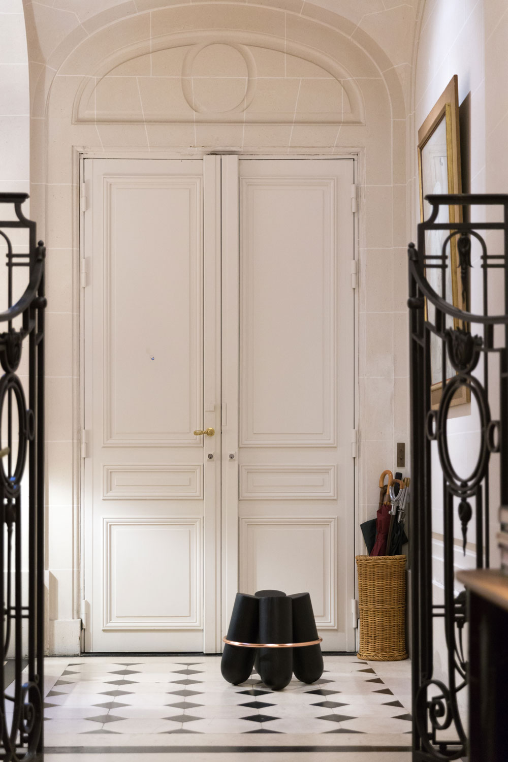 Bolt is maybe the most iconic stool of the collection. Its unique silhouette is highly recognizable with his 4 solid logs elegantly held by a contrasting metal ring. Bolt is a paradoxe: brutal and very refined at the same time. The stool is also surprisingly comfortable, it is a sculpture for daily use.