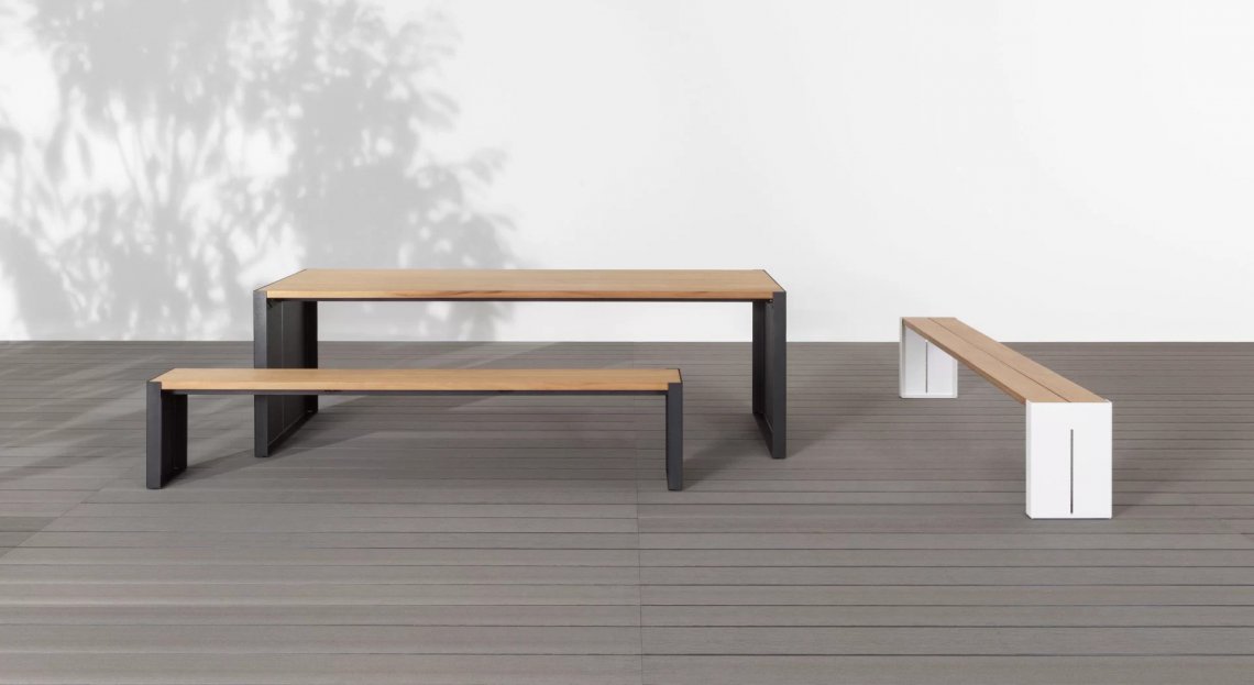 PANCO è l’outdoor della tradizione italiana. Nel disegno antico e contemporaneo, questo magnifico tavolo per esterno poggia su basi in lamiera di acciaio inossidabile verniciato, con taglio dinamico in fiancata. Il piano è in iroko, con venature calde e vissute. Completa il comfort la panca per esterno negli stessi materiali, a scomparsa, per mantenere la bellezza del disegno.