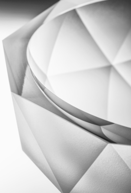 Polygon bowls expand a design concept developed for Polygon lighting collection which shows light, glass and the glass-cutter’s art in perfect mathematical harmony. Combining the traditional shape and Plato’s logic with the polygonal network often used in 3D modeling programs, Polygon creates a new and unusual decor.