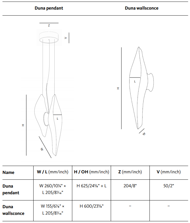 Duna was inspired by the coherent yet abstract logic of dune formations that defy traditional Cartesian geometries. Its design concept is realized in a three dimensional, asymmetrical, pair of intersecting glass forms. The striated surface of the crystal glass produces ever-changing effects of reflection and refraction. Narrowly directed light sources beam light through the mass of glass into the entire glass element, highlighting its geometry.