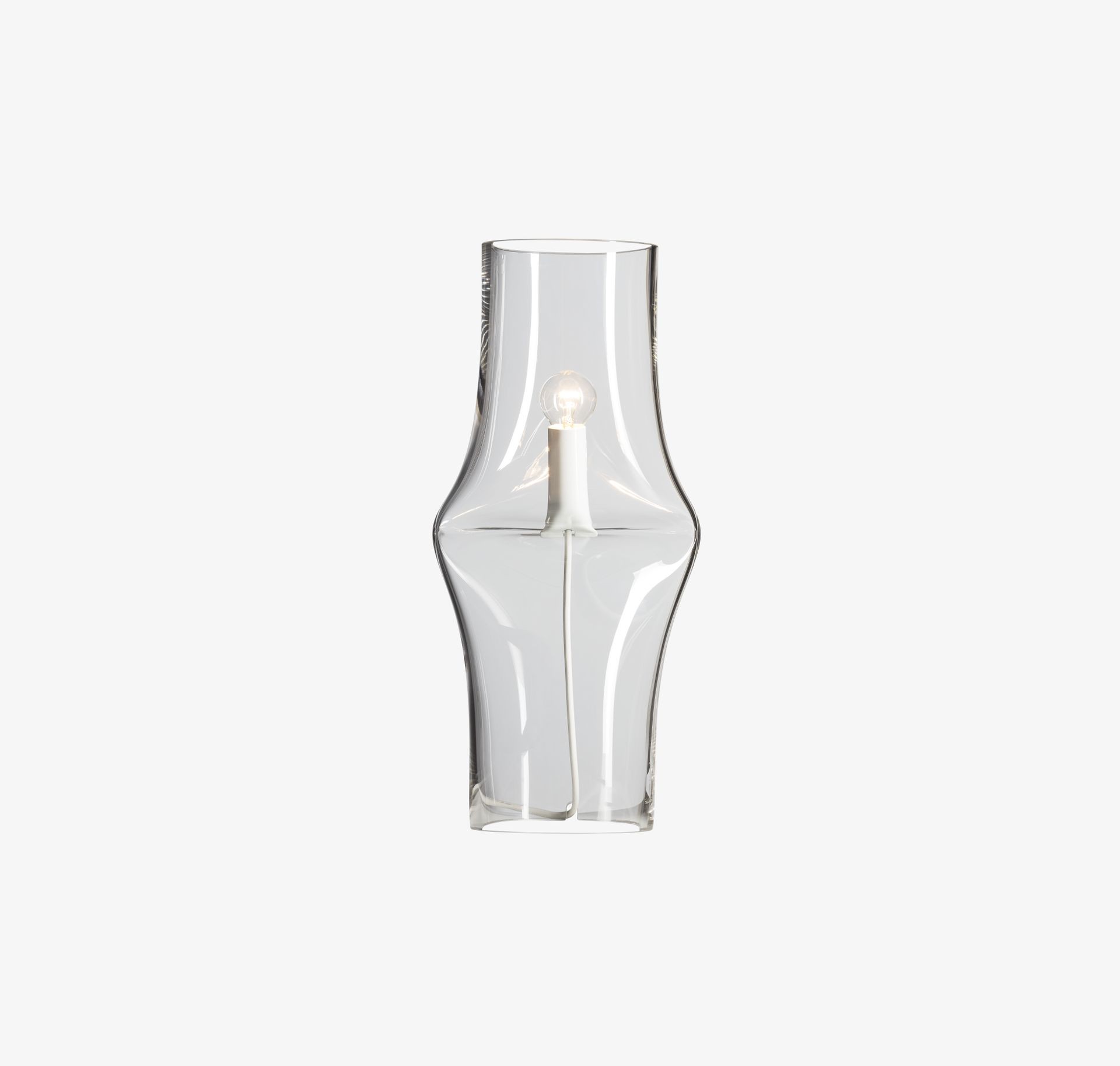 One of influences which shaped modern Japanese design was the Mingei (Folk Crafts) Movement. It emphasised the pursuit of practical beauty as well as the universal appeal of everyday craftwork design. Still present in contamporary Japanese design, these approaches affected also the design of Press Lamp. Here glass tubes are pressed as though they have been pinched, and the light source is ?tted into the narrowed space. It does not rely on a metal form, the compression of the glass produces a soft, organic form and imbues each lamp with a singular appearance.