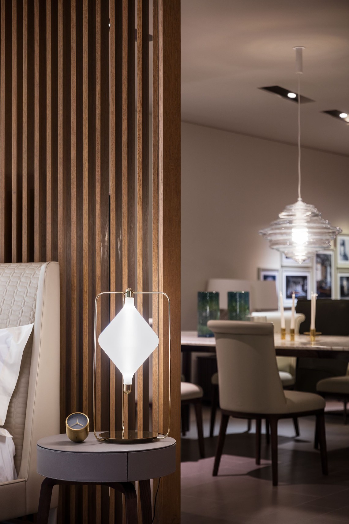 The Clover array is a direct descendent of the Super Clover, a large geometric lighting form based upon extensive study of the opportunities presented by creating light sculptures within mathematical grid systems. Clover extracts specific elements from this study to create simple and small, usable lighting objects that easily find everyday use in the home. Michael Young through his collaboration with Lasvit, hopes to bring some of his artistic talent into personal residences.s