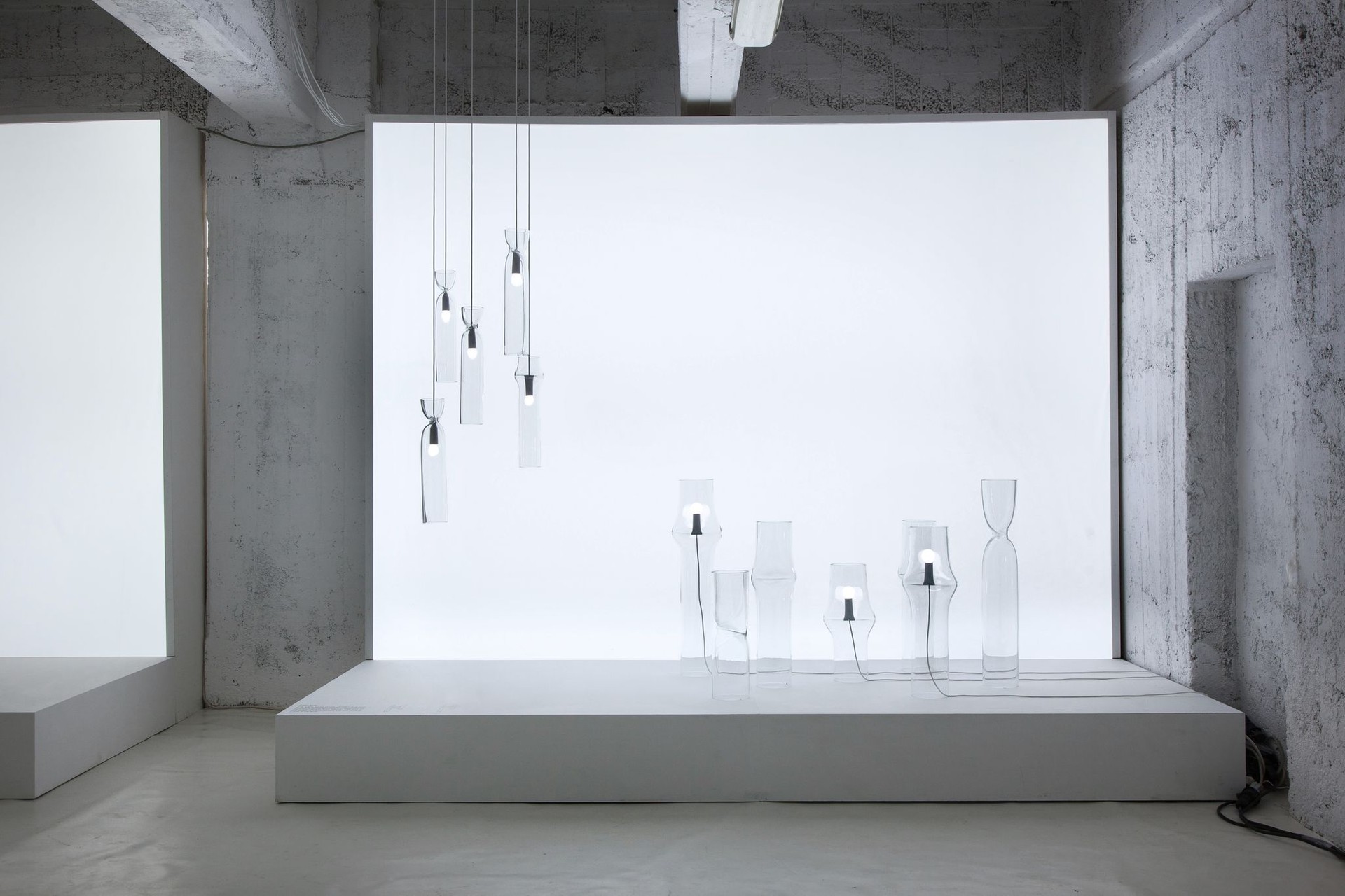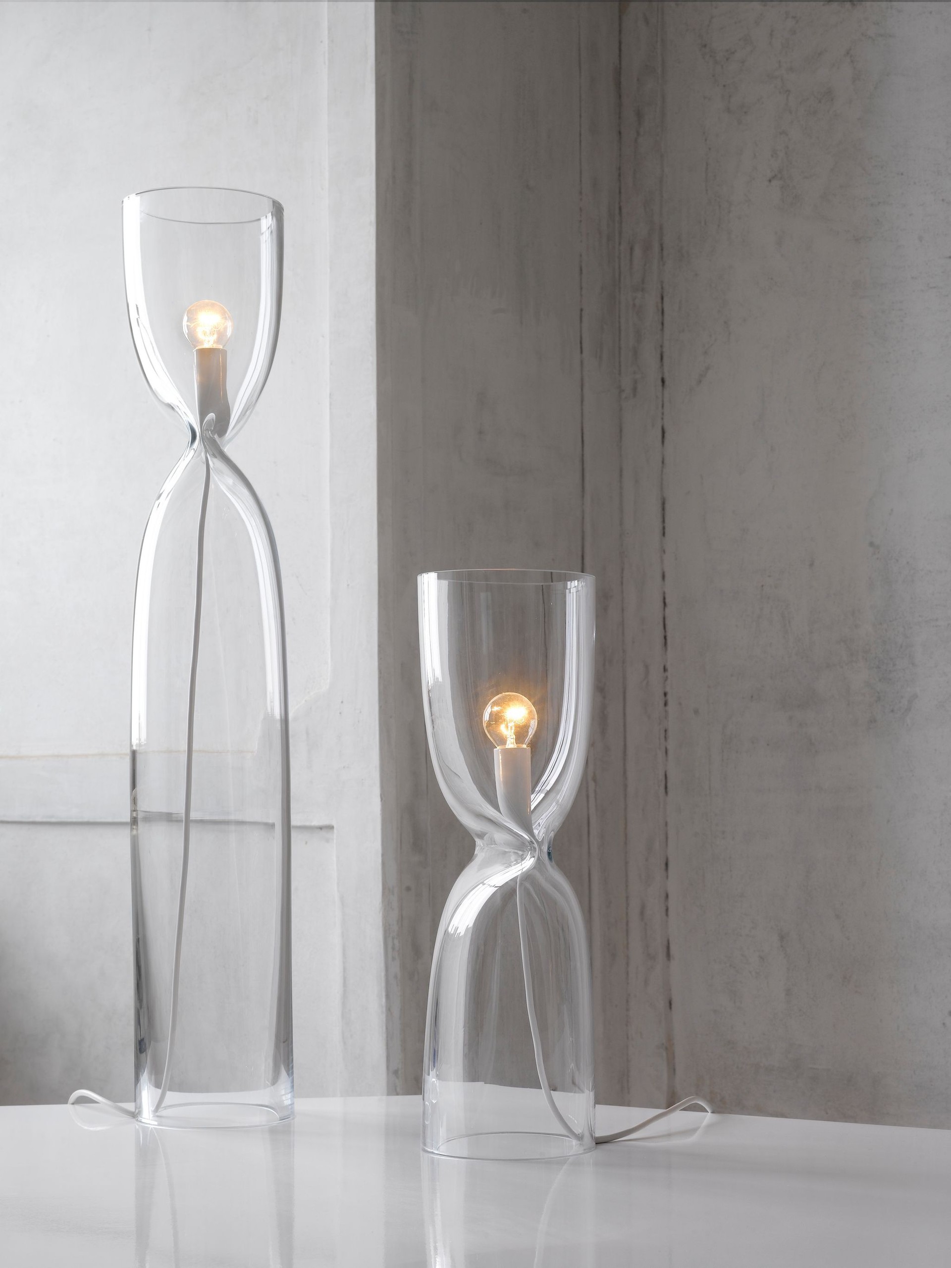 One of influences which shaped modern Japanese design was the Mingei (Folk Crafts) Movement. It emphasised the pursuit of practical beauty as well as the universal appeal of everyday craftwork design. Still present in contamporary Japanese design, these approaches affected also the design of Press Lamp. Here glass tubes are pressed as though they have been pinched, and the light source is ?tted into the narrowed space. It does not rely on a metal form, the compression of the glass produces a soft, organic form and imbues each lamp with a singular appearance.