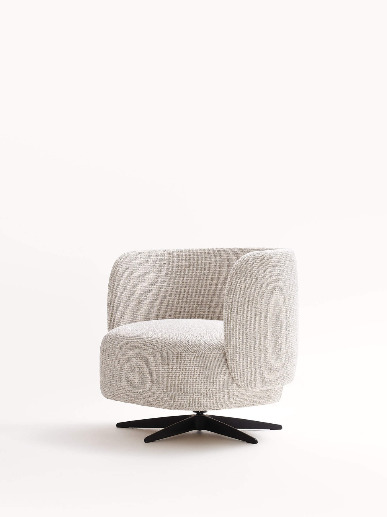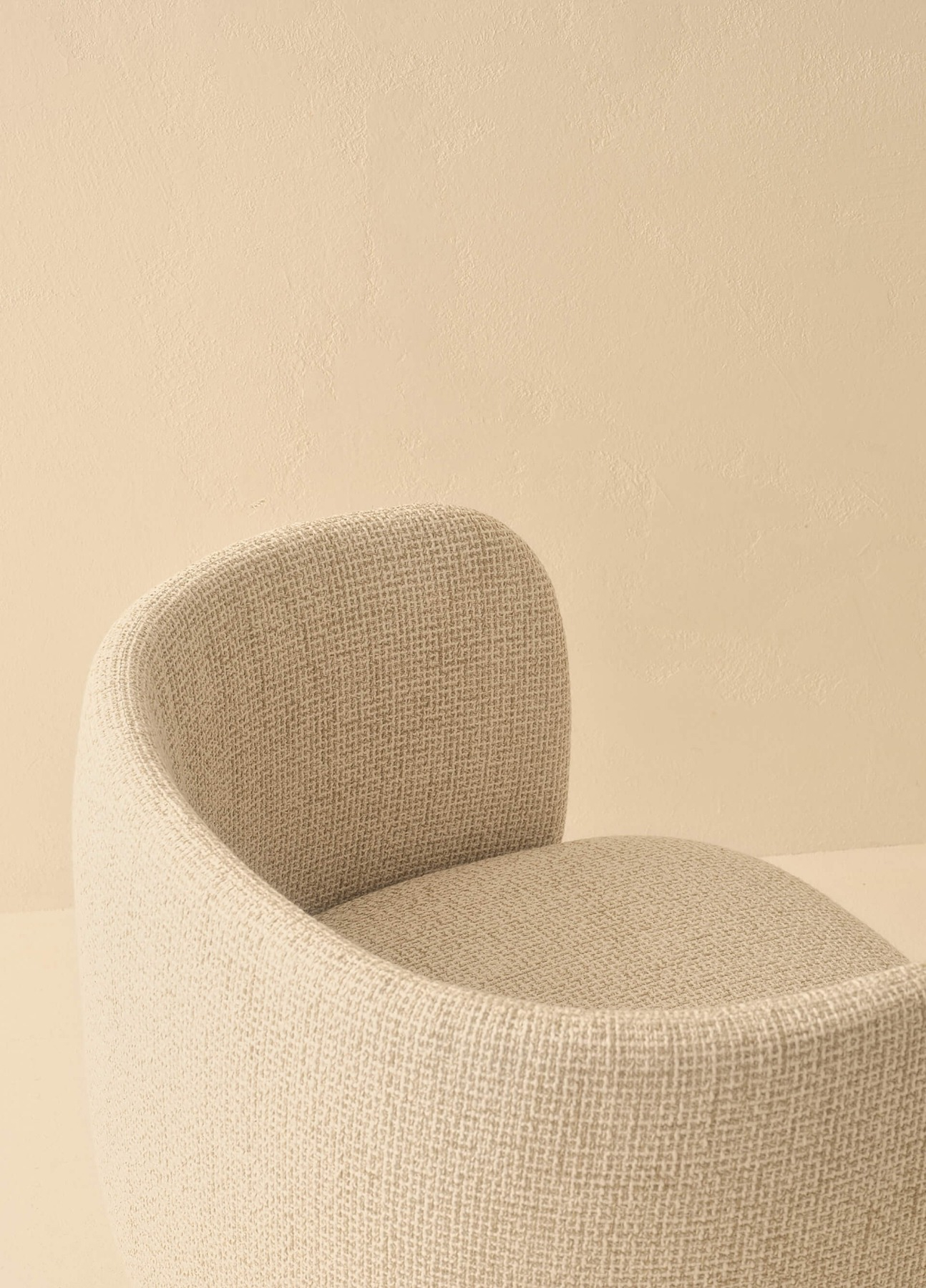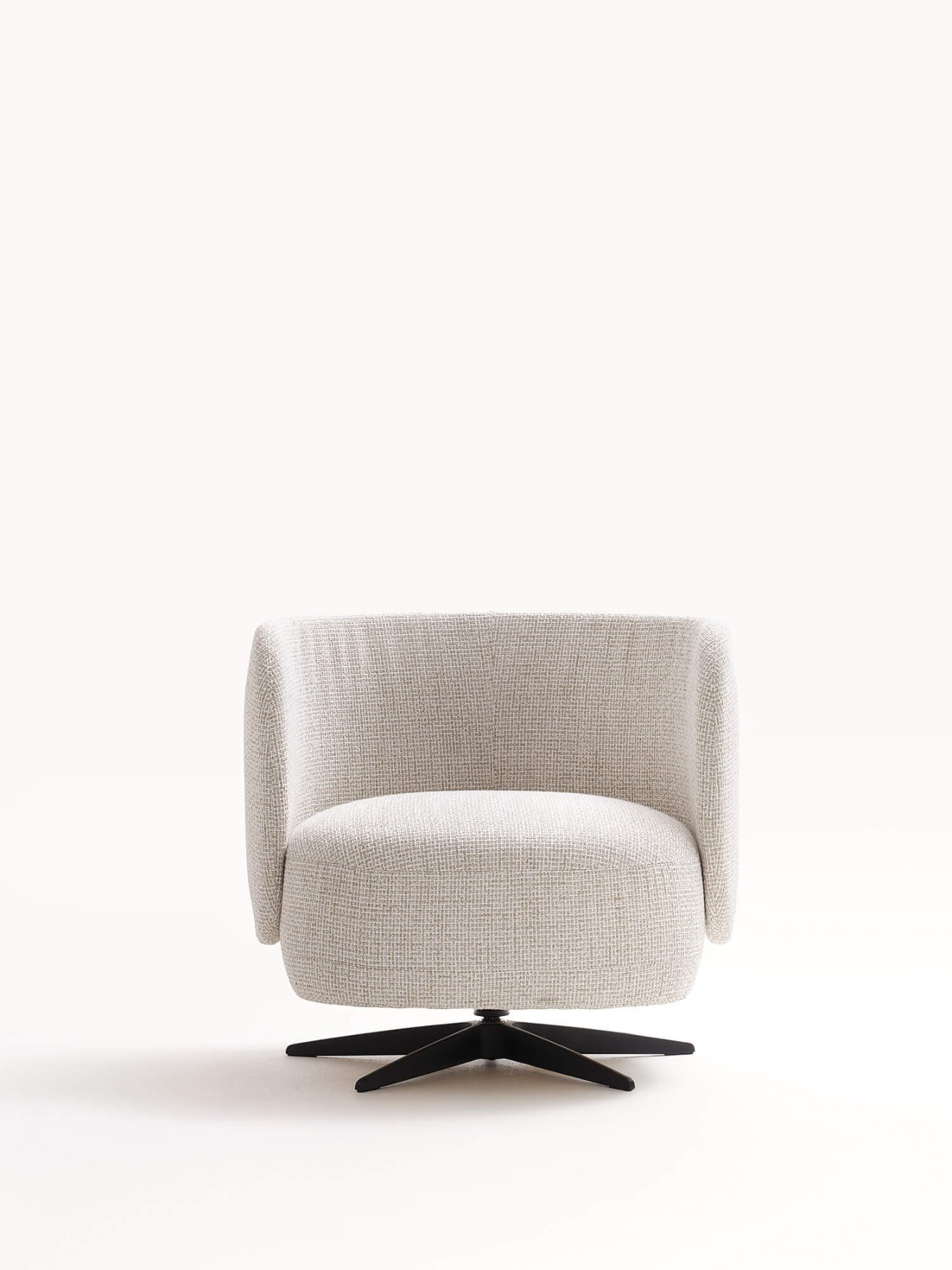 The Miki armchair designed by Pierattelli Architetture embodies the ideals of softness, comfort, and dynamism. Miki consists of a substantial seat cushion enclosed by a padded, curvilinear, and protective shell that, extending itself, surrounds and envelops the seat, serving as both backrest and armrest. With its curvilinear flow, it embraces the body, transforming the armchair into a private and welcoming refuge. Defined by its compact dimensions and high backrest, Miki elevates the central die-cast aluminium pedestal as a distinctive element, making the armchair even more versatile in its use. The armchair features a swivel mechanism that gives the seat a dynamic character and enhances its interaction with the surrounding space. Upholstered in fabric, leather, or vegan leather, Miki is a versatile and harmonious armchair ideal for those seeking a modern and refined taste without compromising on comfort and well-being.