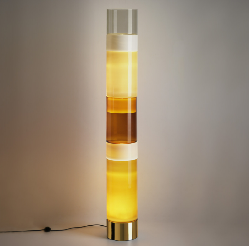 Disegnata da Rockwell Group, Stacking è una lampada da terra creata utilizzando l’idea di cilindri modulari in distinte combinazioni di colori e dimensioni. Questi moduli in vetro soffiato a bocca sono realizzati con una tecnica tradizionale veneziana chiamata “incamiciato” nella quale un Maestro soffiatore utilizza più strati di vetro, ciascuno con trasparenze e proprietà diverse.