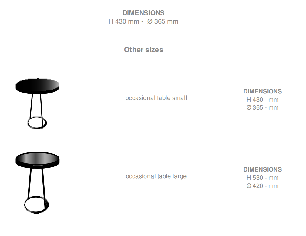 Occasional table (H43) in Epoxy satin black lacquered steel or occasional table (H53) in Epoxy satin black lacquered steel with top in brilliant-polished stainless steel.