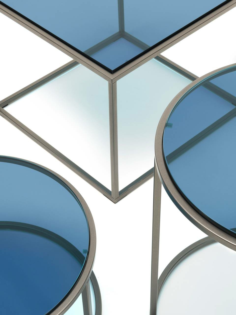 Table in different heights and sizes, with 10 mm thick top, available for  indoor and outdoor. Indoor version: base in AISI 304 Stainless Steel square-section tube,  with matt satin-finishing or steel with epoxy powder coating RAL-K7  9010 white, RAL-K7 9017 black, gunmetal gray colour or burnish  colour. Top available in HPL, decorated on both sides, white or black  colour, clear glass, back-painted black glass, back-painted white extraclear glass, smoked grey glass or blue-tinted glass. Outdoor version: base in AISI 316 Stainless Steel square-section tube,  with matt satin-finishing or in AISI 316 Stainless Steel with epoxy  powder coating RAL-K7 9010 white, RAL-K7 9017 black, gunmetal  colour or burnish colour. Top available in HPL, decorated on both sides, white or black  colour,clear glass, smoked grey glass or blue-tinted glass.