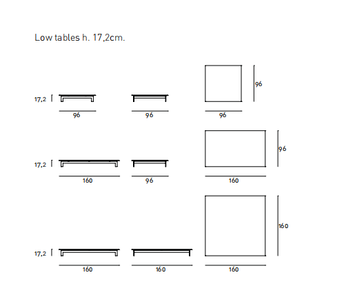 Low table with rectangular section steel base with finishing in burnished epoxy powder coating and floor support secured by black PVC tips. Top in tempered glass, available versions: clear glass, black back-painted glass, smoked glass or white back-painted extra-clear glass.