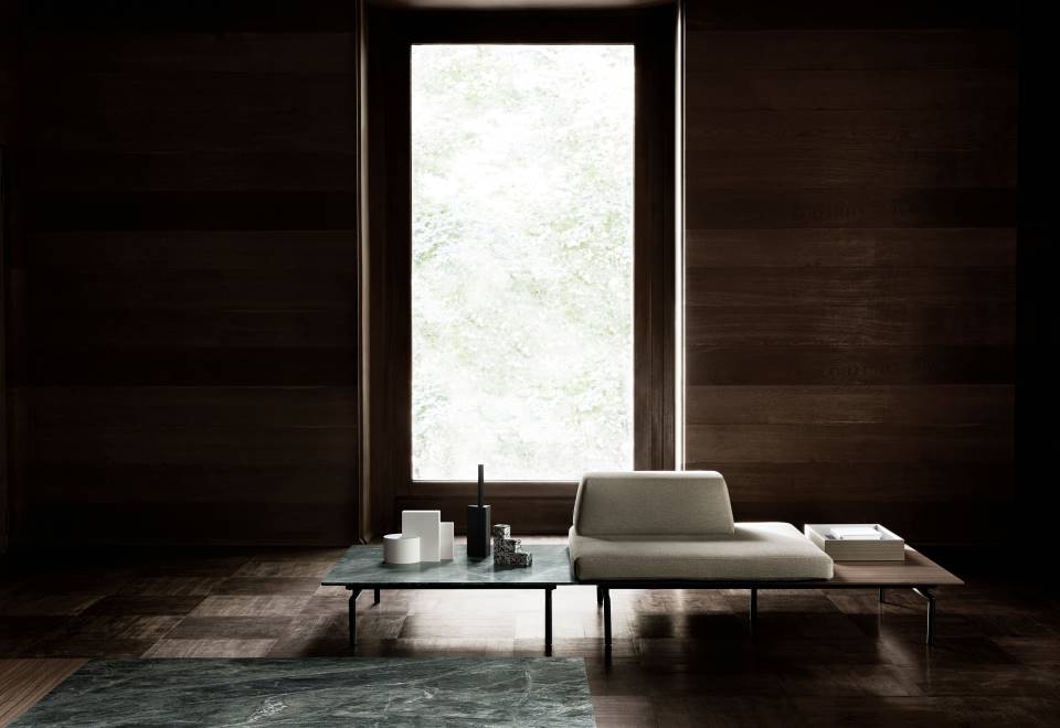 The Sumo bench features loose cushions of different sizes that are combined with the wood top to which elegant and functional colored containers can be paired.