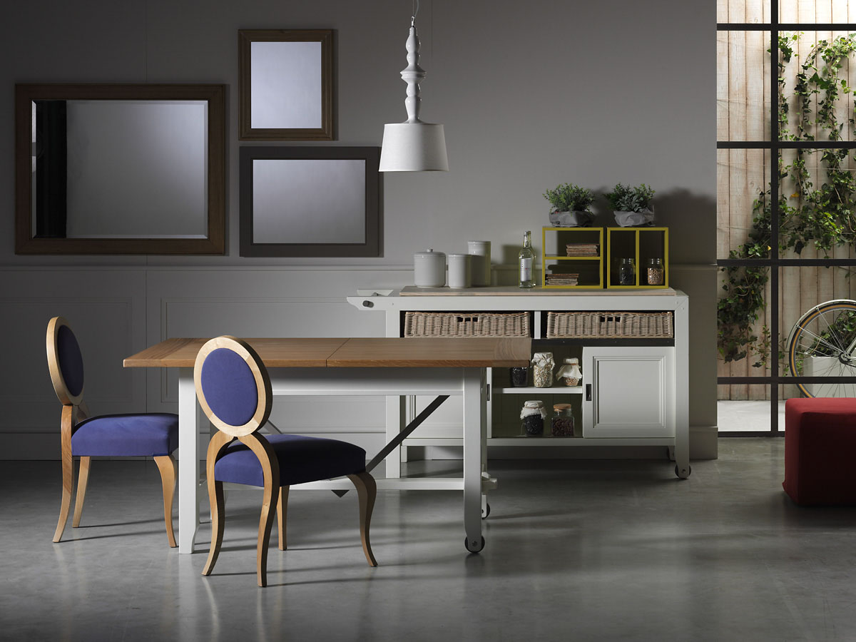 Rotella is a complementary furniture item used as a sideboard with lines that are reminiscent of workbenches. Simple in shape but sturdy, Rotella is fashioned from lacquered cherry wood and is fitted with two simple wooden wheels and a end bar handle which makes it easy to move.