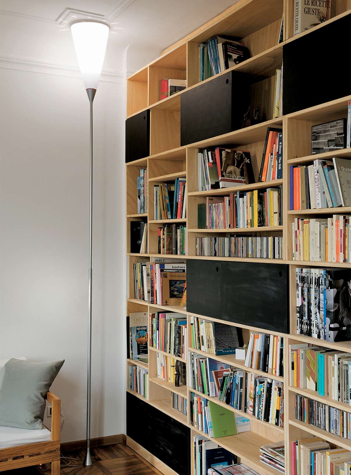 Neither a floor lamp nor a ceiling lamp, but both, at the same time. Easy to assemble and install, its versatility immediately resolves all light positioning issues.