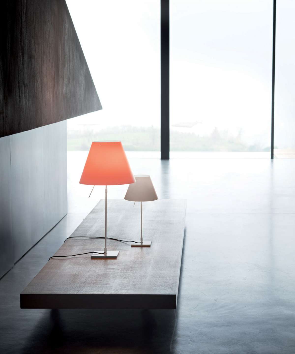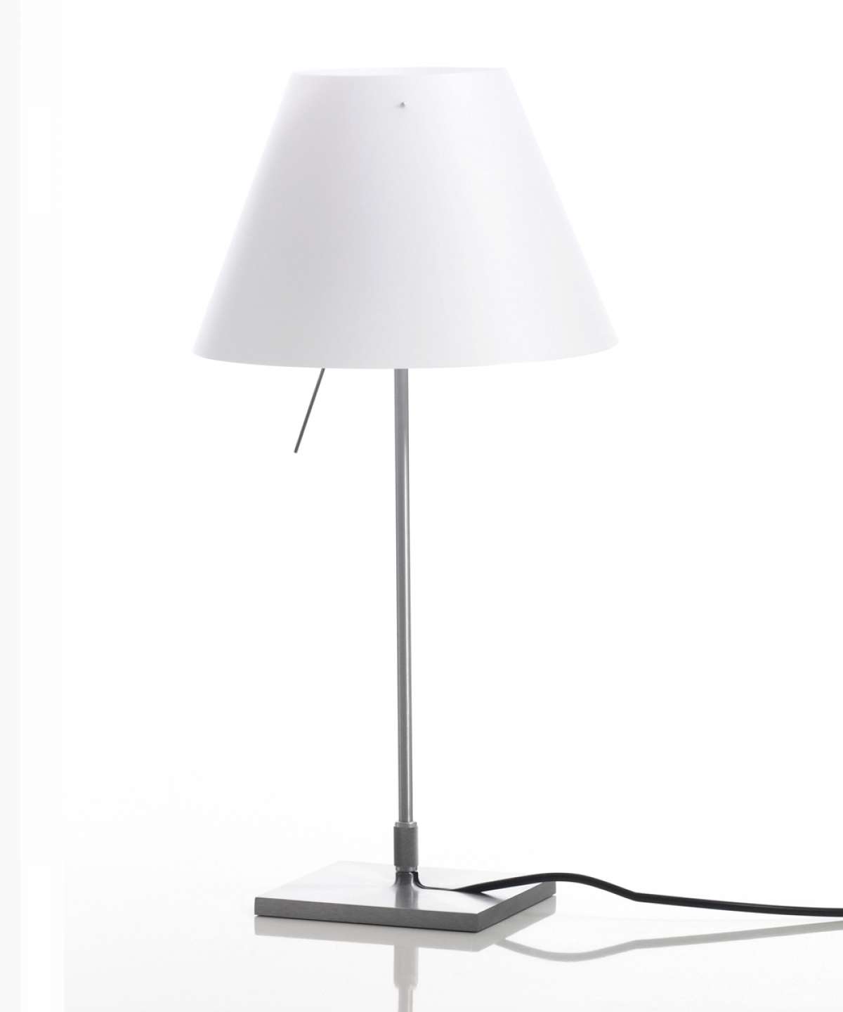 The colored polycarbonate shade adds personality to any setting. The control rod is positioned close to the light source. A counterweight provides easy height adjustment.