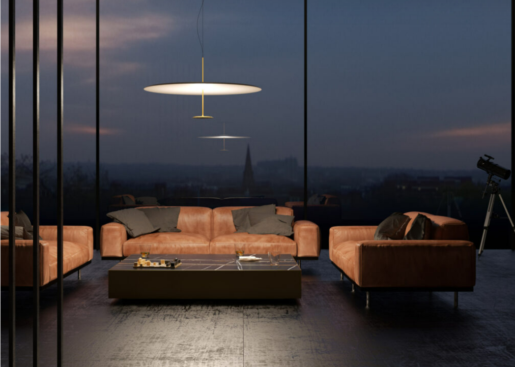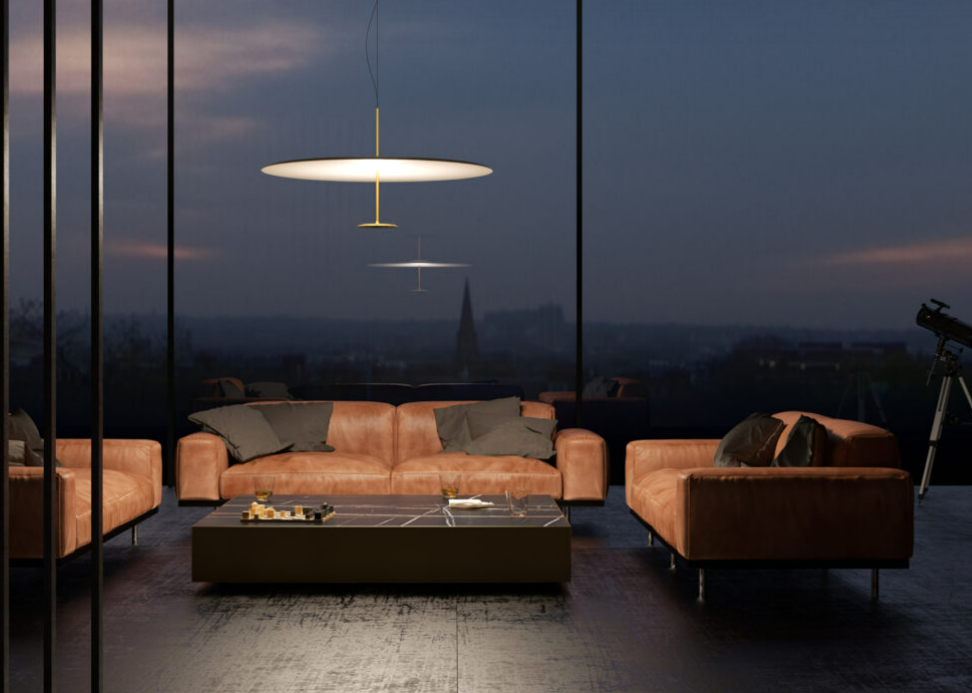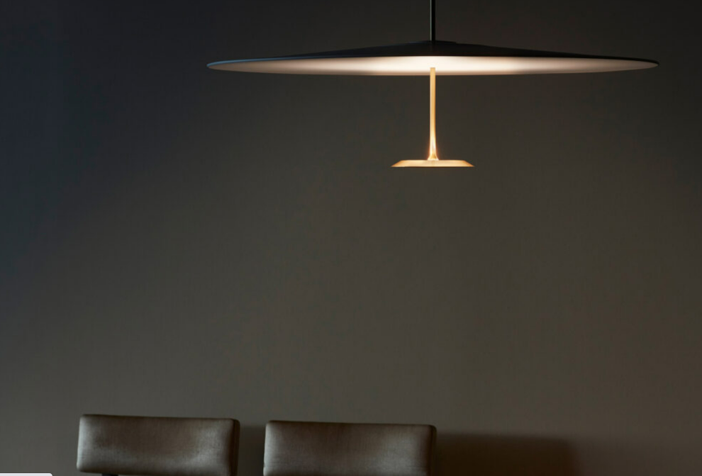 Their design neatly combines formal rigour and the most advanced lighting technology. Dot has two differently sized parallel disks connected through their centres by a thin metal tube. The bottom, smaller disk is turned aluminium and contains a LED ring optically engineered to cast a high quantity of light onto the top disk, the diffuser, made of lacquered aluminium.