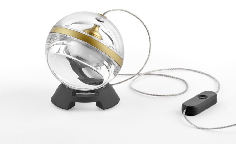A small turned aluminum base houses the Limbus body, thus giving the lamp the ability to direct the light beam in all directions.