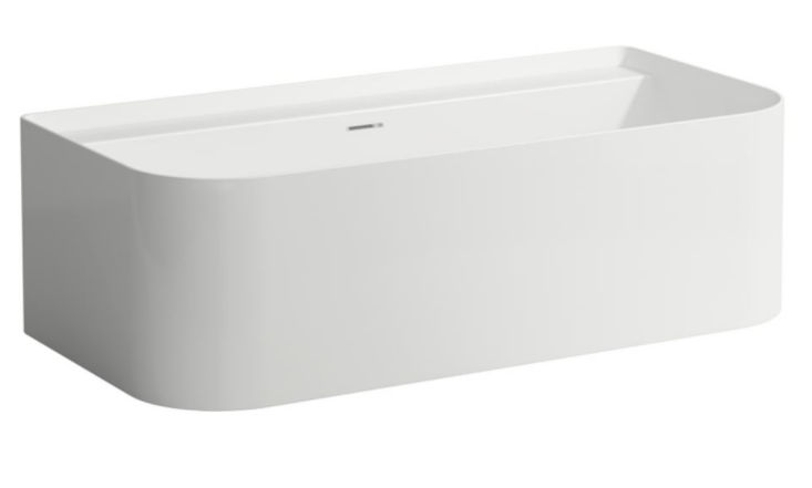 Bathtub, made of Sentec solid surface, with wall connection, tap bank and integrated overflow