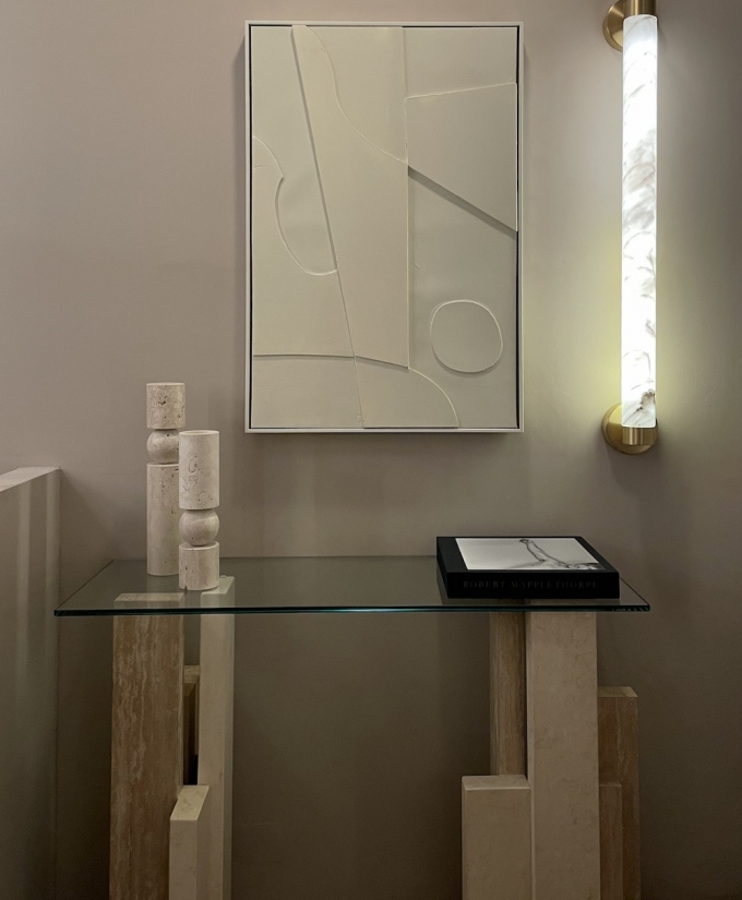 Skillfully milled from a single piece of Carrara marble and finished at each end with brass or chrome bands, Tube contains a strip of LED bulbs resulting in what appears to be a solid length of warm glowing stone. The unique veins of each piece of marble mean no two lights are exactly the same. A handcrafted twist on the traditional fluorescent tubelight.
