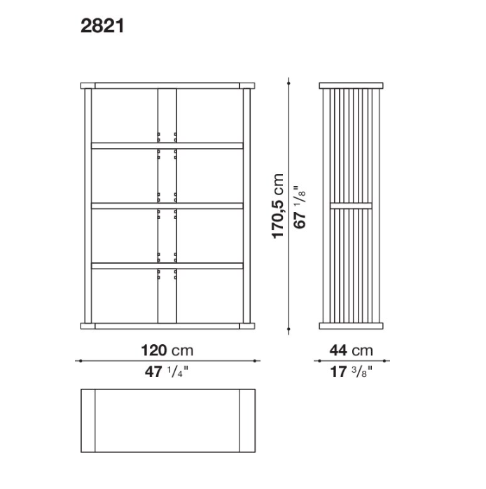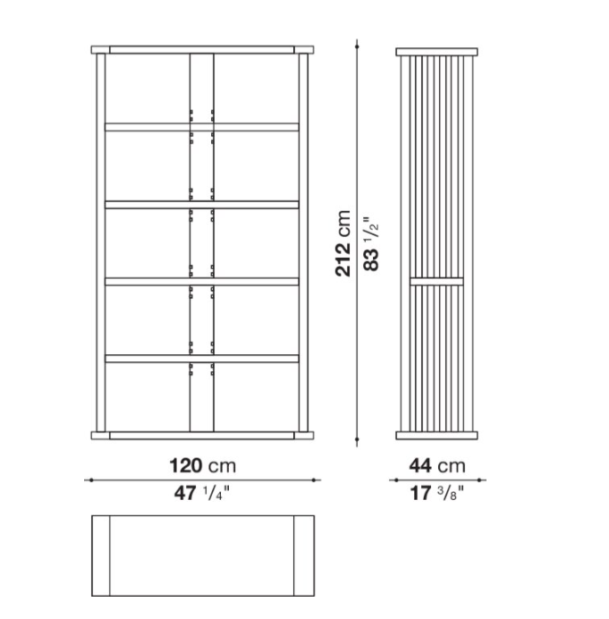 A bookcase created to accommodate large books, Biblia is made up of several modules in width and comes in three different heights, whereas the depth is always the same. It displays a remarkable interplay of strips marking the uprights.