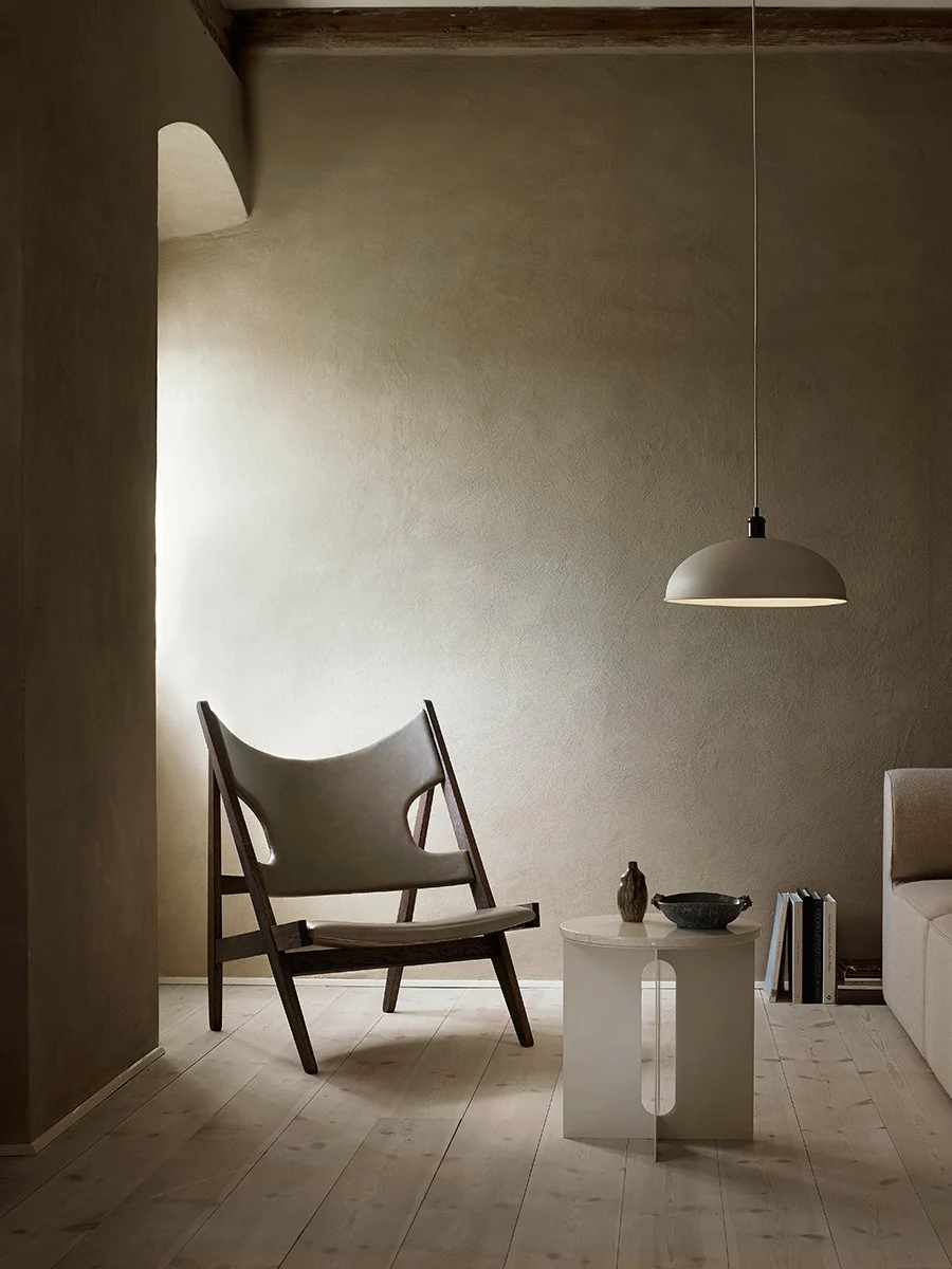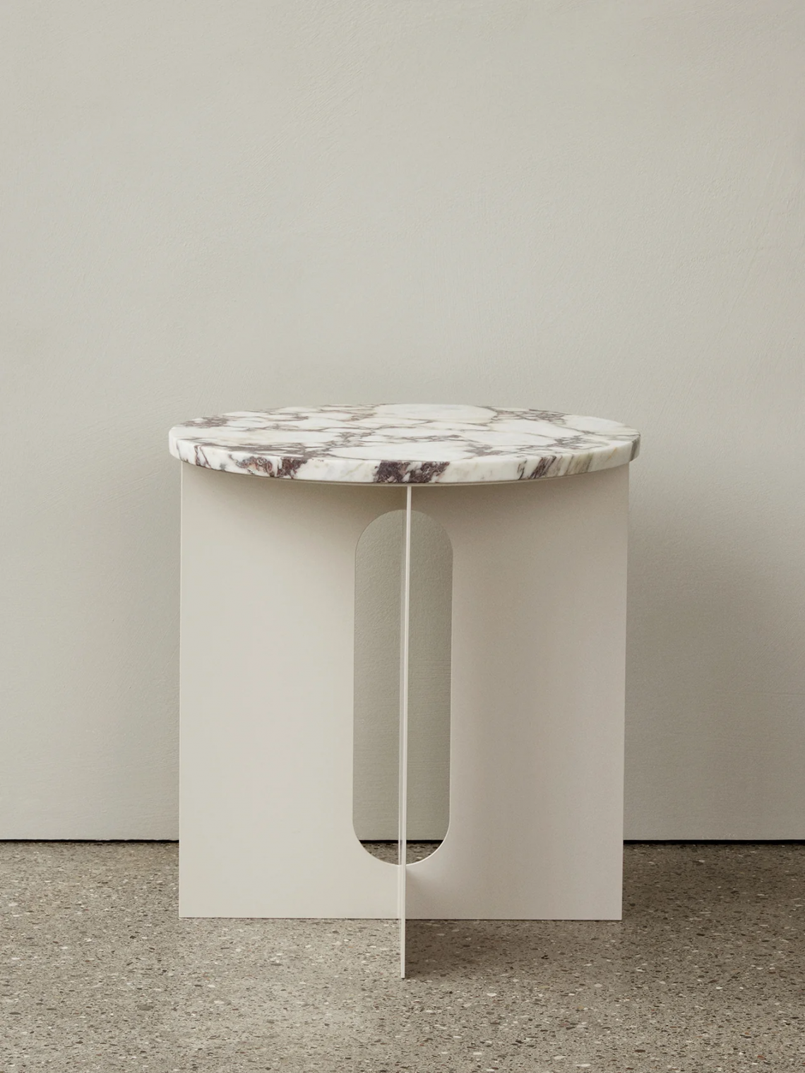 The perfectly proportioned table comprises a sturdy powder coated steel base on which a rounded marble tabletop is balanced. The table’s refined marble top, which barely hangs over the legs to create an overall sense of balance, and contrasting wide, flat legs – laser-cut for precision – make it an easy fit for a range of de?cor styles. Both base and top are available separately and in ivory or black powder coated steel and white or black marble respectively for total customization.