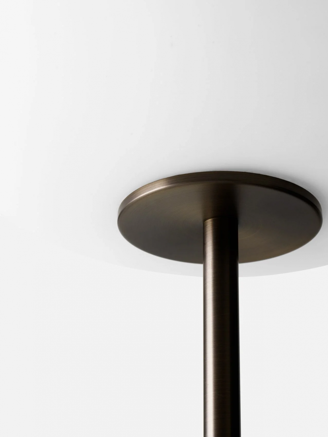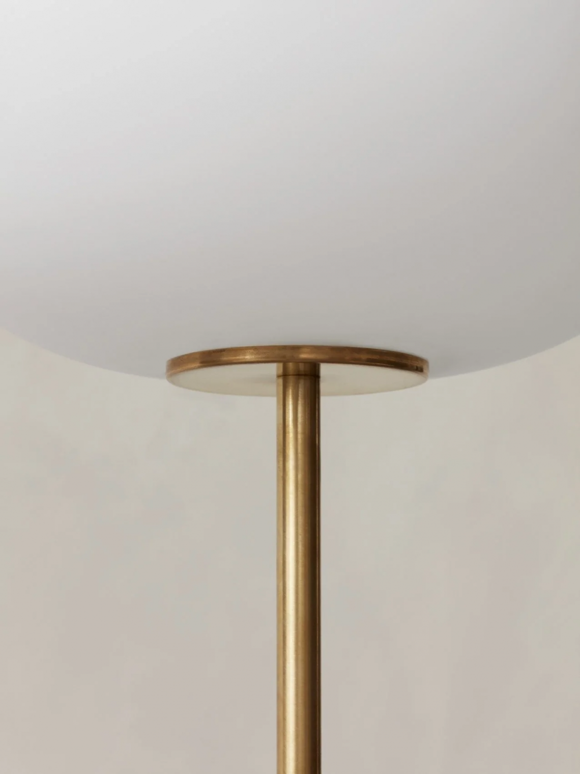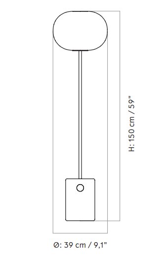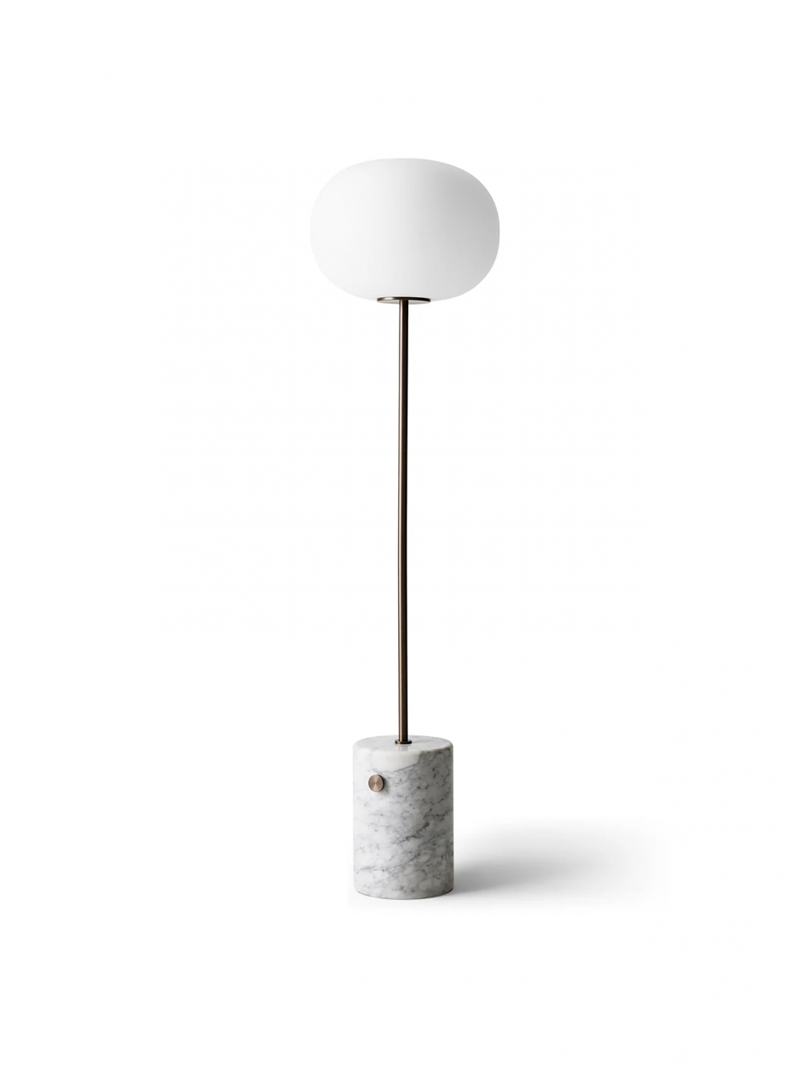 The JWDA Floor Lamp is part of a collection of lighting inspired by traditional oil lamps. Crafted from contrasting materials, the elegant yet bold design is a lesson in refinement and a study in geometry. An elliptical opal glass shade, a slender metal stem, and a rectangular marble base fitted with a dimmer switch come together to create this timeless addition to modern spaces.